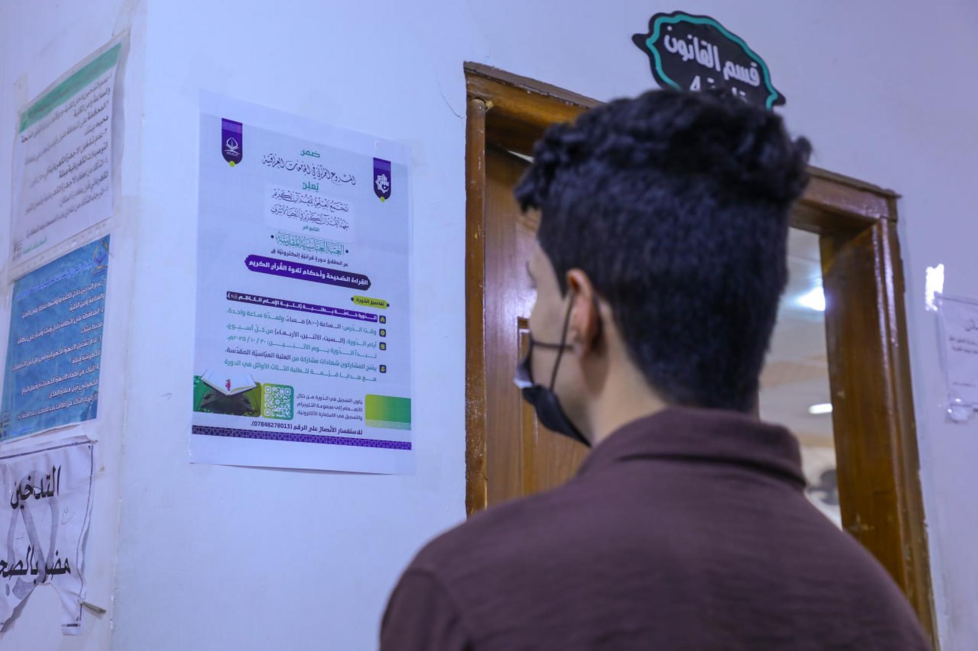 أطلق المجمع العلمي للقرآن الكريم في العتبة العباسية المقدسة حملة إعلانية للتعريف بالدورات القرآنية الإلكترونية، ضمن المشروع القرآني في الجامعات العراقية بدورته السادسة. ويشرف على تنظيم المشروع معهد القرآن الكريم في النجف الأشرف التابع للمجمع؛ بهدف تعليم القراءة الصحيحة وأحكام التلاوة. وقال السيد عقيل العابدي من وحدة التلاوة في المعهد: إنّ "وفدًا من المعهد زار جامعة جابر بن حيان للعلوم الطبية والصيدلانية، وكلية الإمام الكاظم (عليه السلام) للعلوم الإسلامية الجامعة، ونشر الإعلانات في أروقة الجامعتين". وبيّن أنّ "الإعلانات تتضمن حثّ الطلبة والملاكات التدريسية والإدارية في الجامعتين، على التسجيل في الدورات الإلكترونية للمشروع، التي ستنطلق في العشرين من الشهر الحالي."