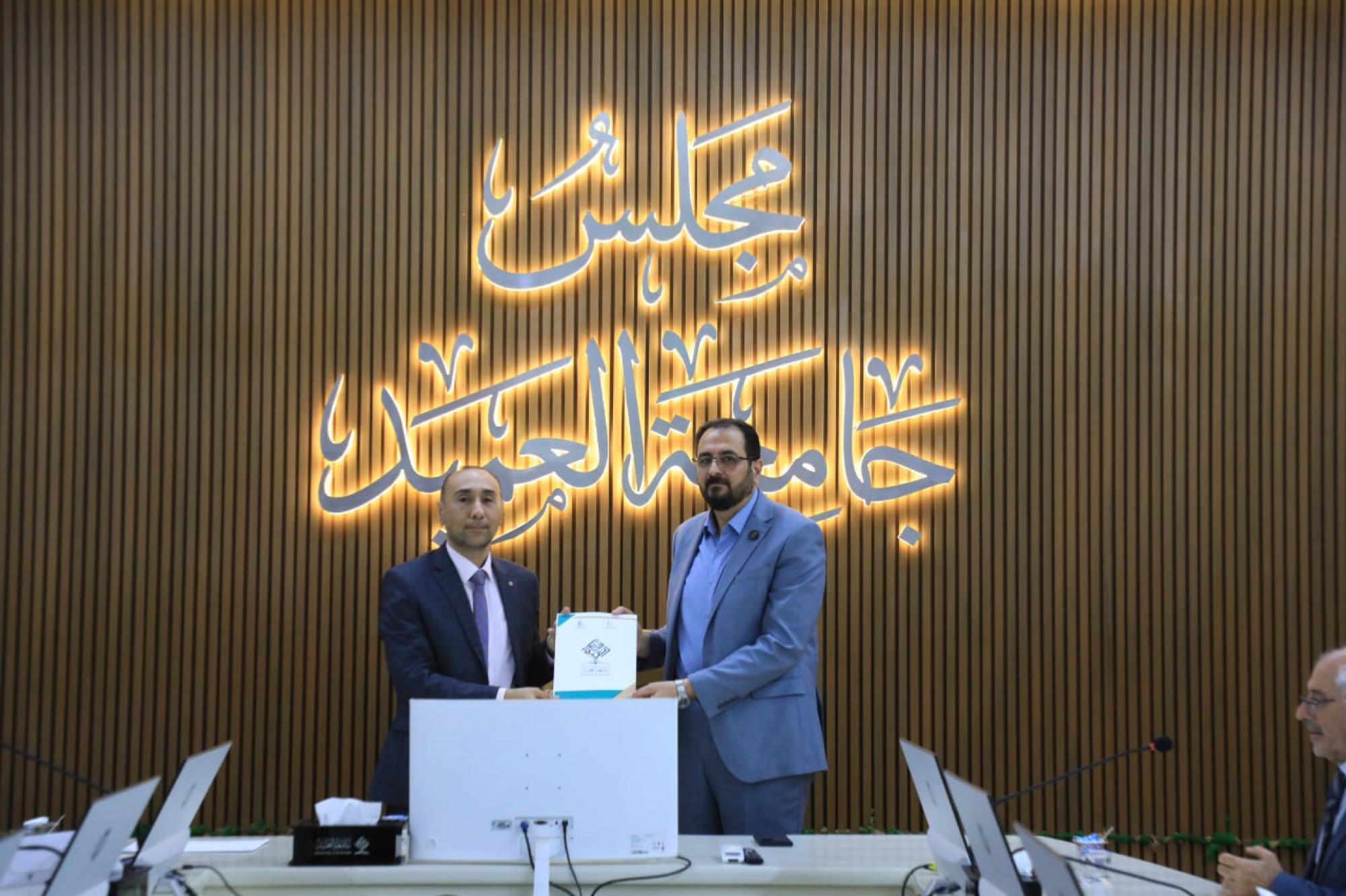 ناقشت جامعة العميد متطلبات إكمال ملف الاعتماد البرامجي في كلية الطب التابعة لها. جاء ذلك في أثناء لقاء رئيس الجامعة الدكتور جودت نوري الجشعمي، مع عمادة كلية الطب في الجامعة ورؤساء محاور لجنة الاعتماد البرامجي وأعضائها. واستعرضت عمادة الكلية أبرز ما أُنجز من أعمال ومحاور ضمن خطة الاعتماد البرامجي، إلى جانب الخطوات التي اتُخذت لاستيفاء معاييره لكليات الطب في العراق، بما يعزز جودة الأداء الأكاديمي والتعليمي في الكلية. وقُدّمت في ختام اللقاء النسخة النهائية من ملف الاعتماد؛ تمهيدًا لتقديمها إلى المركز الوطني لاعتماد كليات الطب في العراق.