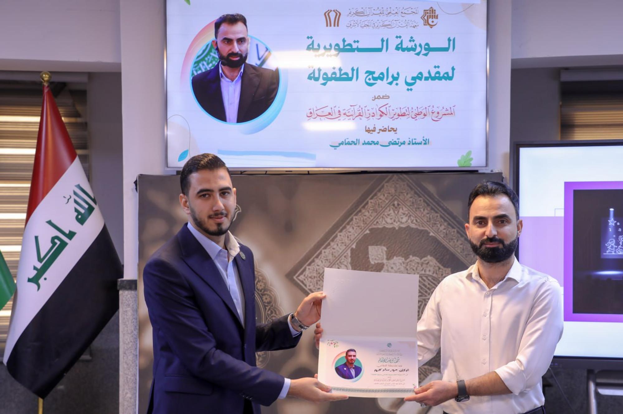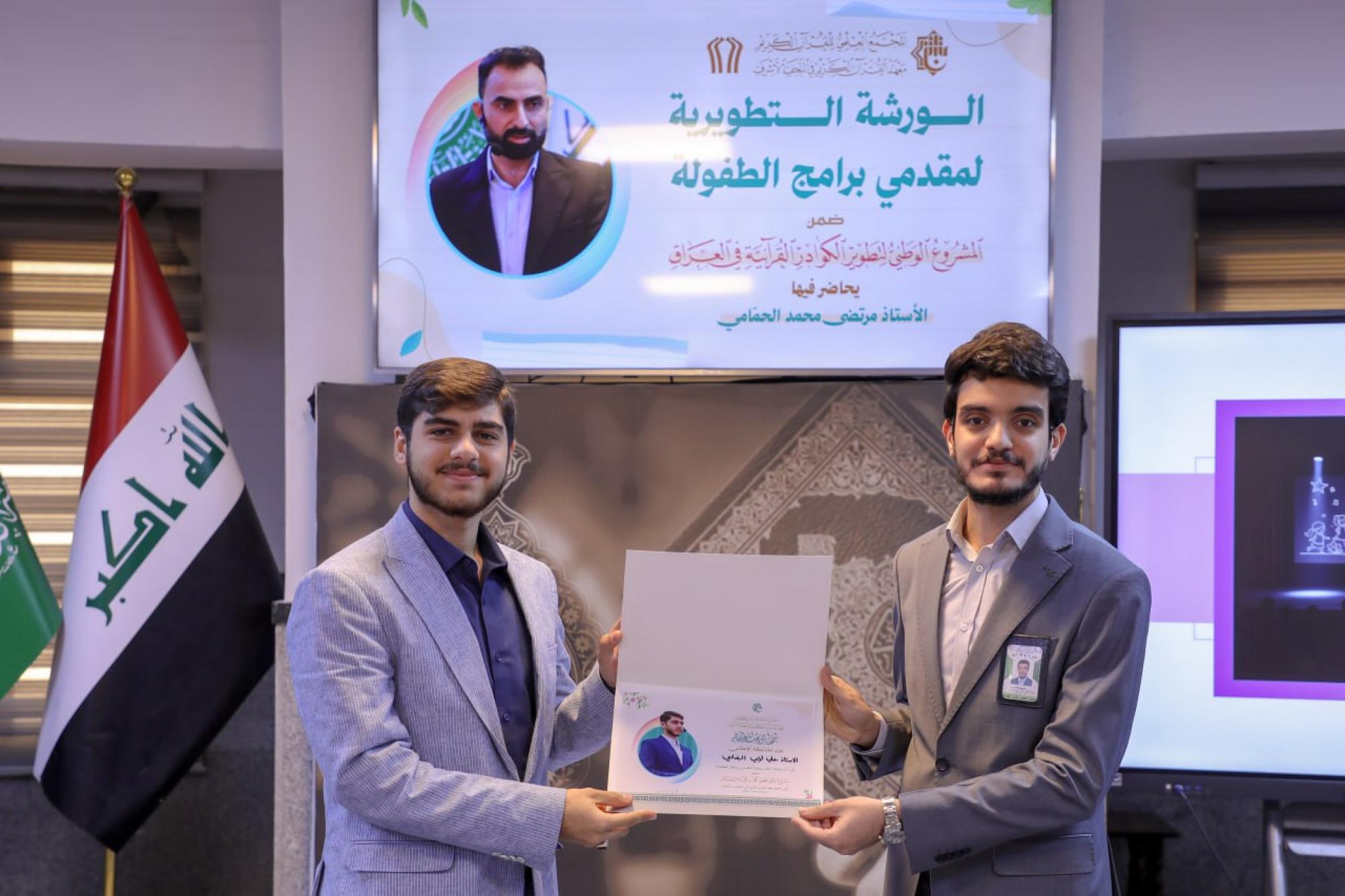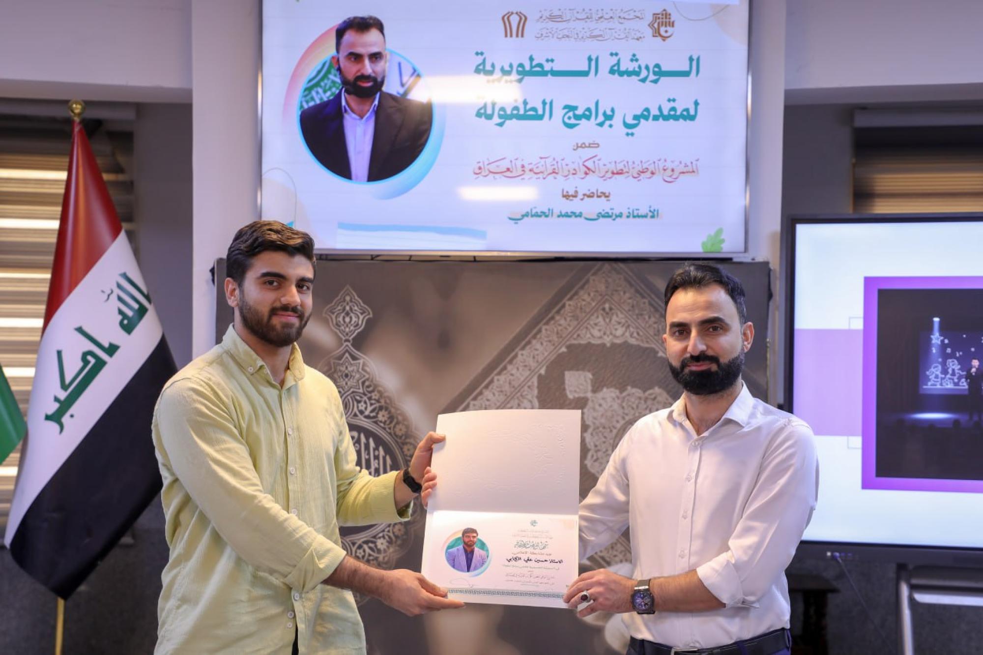 أقام المَجمَعُ العلميّ للقرآن الكريم في العتبة العبّاسية المقدّسة، محفلاً قرآنياً بعنوان: (أنوار القرآن)، وورشةً تطويريّة ضمن جهوده المتواصلة في نشر الثقافة القرآنية، وتطوير الملاكات العاملة في مجال برامج الطفولة. وقال مسؤولُ معهد القرآن الكريم/ فرع الهندية التابع للمَجمَع السيد حامد المرعبي، إن "المعهد نظّم محفلاً قرآنياً بعنوان (أنوار القرآن)، شارك فيه نخبةٌ من القرّاء، وتضمّن تلاواتٍ قرآنيّة متنوّعة وفقرة إنشادية قدّمتها فرقة إنشاد مشروع (تالي كتاب الله)، أعقبتها أنشودةٌ جماعيّة لطلبة الفرع"، لافتاً إلى أن "الفعّاليات اختُتِمت بتكريم المشاركين تقديرًا لعطائهم وجهودهم في دعم الأنشطة القرآنية المستمرّة". وأقام معهدُ القرآن الكريم في النجف الأشرف التابع للمَجمَع، ورشةً تدريبيّة تخصّصية لإعداد مقدّمي برامج الطفولة، ضمن المشروع الوطنيّ لتطوير الملاكات القرآنيّة في العراق، بمشاركة 10 متدرّبين من مقدّمي برامج الطفولة في العتبة المقدّسة، من محافظات: النجف الأشرف، والديوانية، وبغداد، وصلاح الدين.