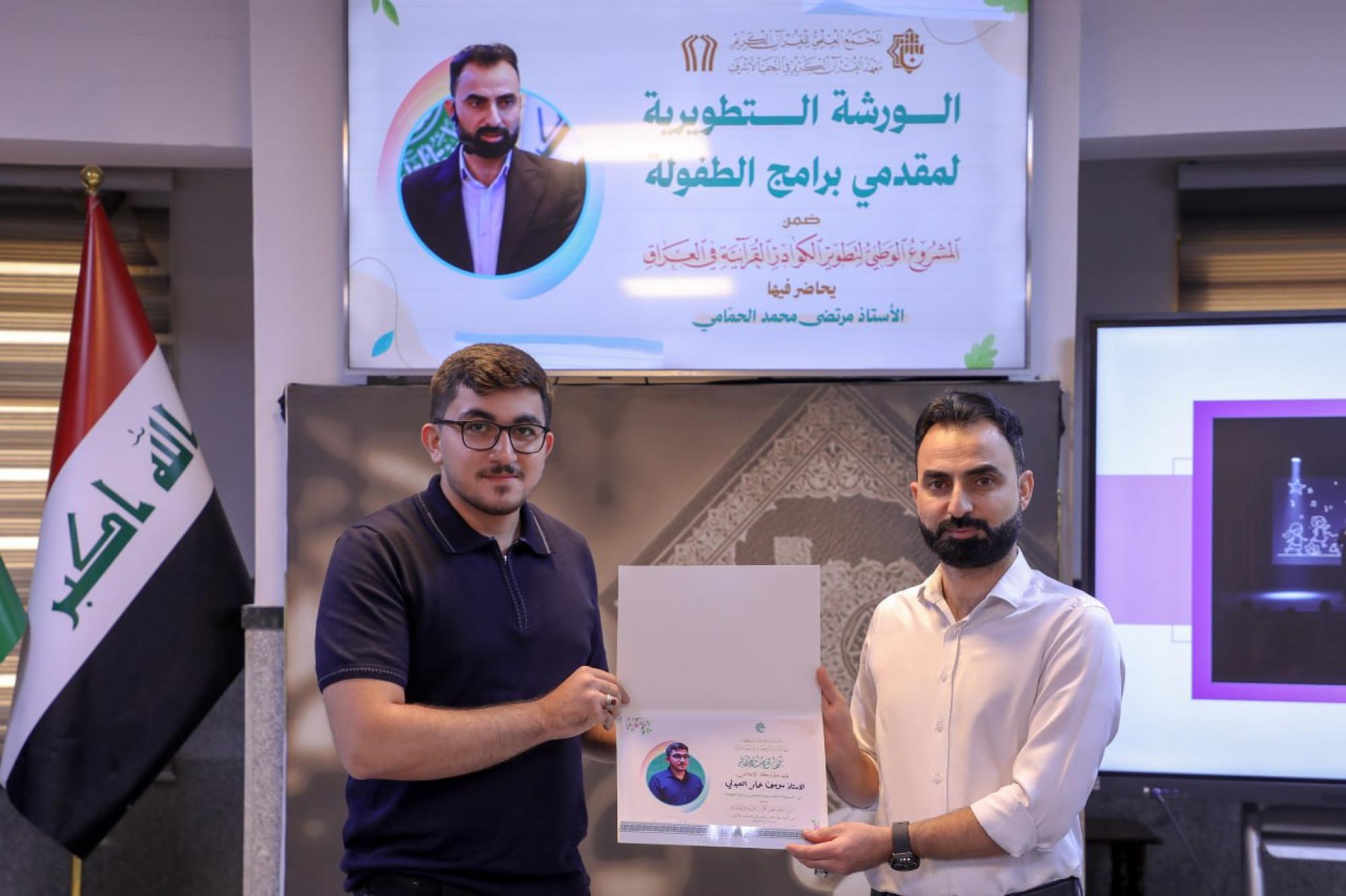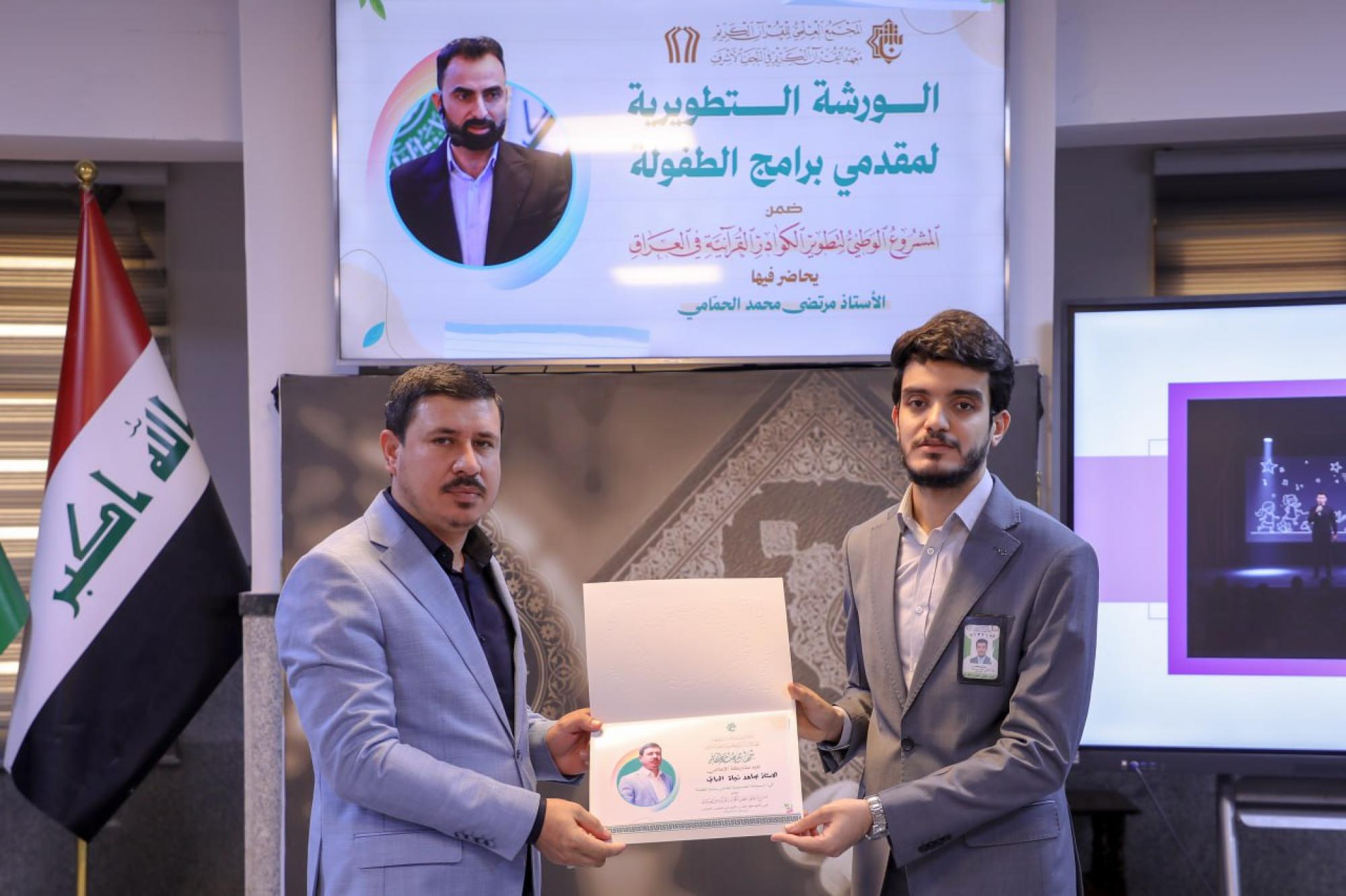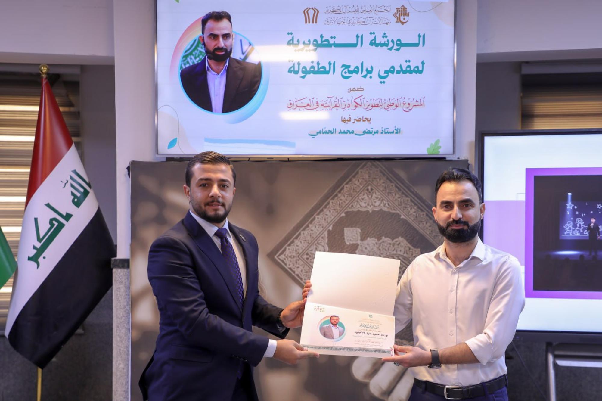 أقام المَجمَعُ العلميّ للقرآن الكريم في العتبة العبّاسية المقدّسة، محفلاً قرآنياً بعنوان: (أنوار القرآن)، وورشةً تطويريّة ضمن جهوده المتواصلة في نشر الثقافة القرآنية، وتطوير الملاكات العاملة في مجال برامج الطفولة. وقال مسؤولُ معهد القرآن الكريم/ فرع الهندية التابع للمَجمَع السيد حامد المرعبي، إن "المعهد نظّم محفلاً قرآنياً بعنوان (أنوار القرآن)، شارك فيه نخبةٌ من القرّاء، وتضمّن تلاواتٍ قرآنيّة متنوّعة وفقرة إنشادية قدّمتها فرقة إنشاد مشروع (تالي كتاب الله)، أعقبتها أنشودةٌ جماعيّة لطلبة الفرع"، لافتاً إلى أن "الفعّاليات اختُتِمت بتكريم المشاركين تقديرًا لعطائهم وجهودهم في دعم الأنشطة القرآنية المستمرّة". وأقام معهدُ القرآن الكريم في النجف الأشرف التابع للمَجمَع، ورشةً تدريبيّة تخصّصية لإعداد مقدّمي برامج الطفولة، ضمن المشروع الوطنيّ لتطوير الملاكات القرآنيّة في العراق، بمشاركة 10 متدرّبين من مقدّمي برامج الطفولة في العتبة المقدّسة، من محافظات: النجف الأشرف، والديوانية، وبغداد، وصلاح الدين.