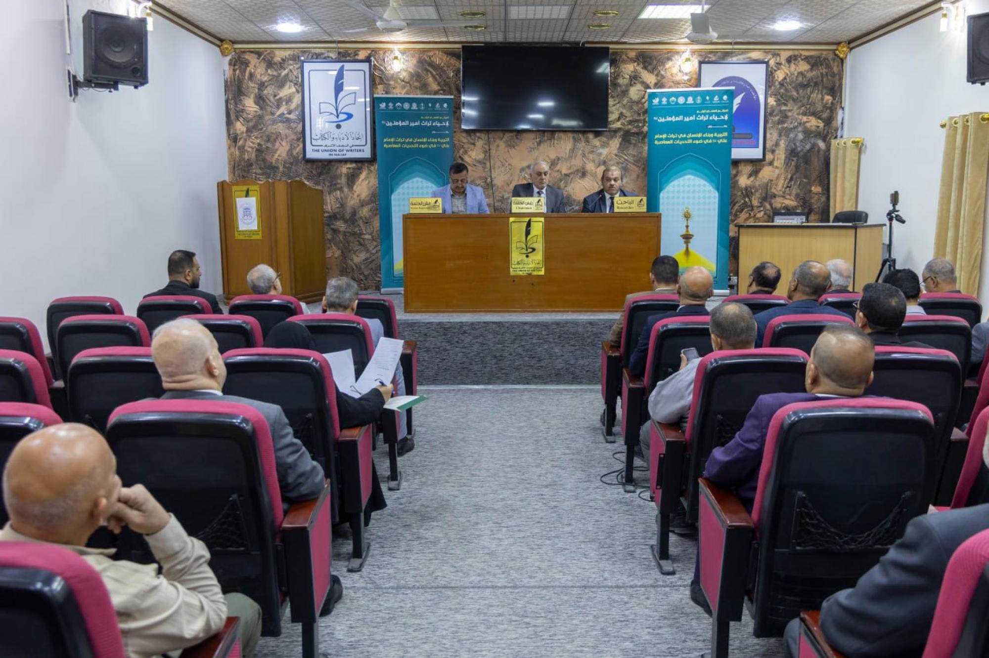 شهدت فعاليات اليوم الثاني من المؤتمر العلمي الرابع لإحياء تراث أمير المؤمنين (عليه السلام)، إقامة الجلسة البحثية الرابعة. ويُقام المؤتمر برعاية العتبة العباسية المقدسة، وينظمه مركز المرايا للدراسات والإعلام، بالتعاون مع جمعية العميد العلمية والفكرية، وأمانة مسجد الكوفة المعظم، وجامعتي الكفيل والعميد، وكلية الآداب في جامعة الكوفة، ومركز دراسات الكوفة، واتحاد الأدباء والكتاب في النجف الأشرف، وتحت عنوان (التربية وبناء الإنسان في تراث الإمام علي -عليه السلام- في ضوء التحديات المعاصرة). وتضمّنت الجلسة التي ترأسها الأستاذ الدكتور فاضل الميالي، مناقشة ستة بحوث، حمل الأول منها عنوان (أثر العلم في التربية الأسرية الصالحة – منهج الإمام أمير المؤمنين -عليه السلام- أنموذجًا) للأستاذ الدكتور حيدر عبد الحسين، والثاني (القيم الإنسانية في فكر الإمام علي -عليه السلام-) للأستاذة الدكتورة عهود حسين، والثالث (المنهج التربوي والأخلاقي في فكر أمير المؤمنين علي بن أبي طالب -عليه السلام- دراسة تحليلية)، للأستاذ المساعد الدكتور محمد خضير والأستاذ المساعد الدكتور كريم الكلابي، والرابع (نظم الأمر وأهميتها في التنشئة الاجتماعية في فكر الإمام علي -عليه السلام-) للأستاذ هاشم محمد، والخامس (التربية الفعالة في فكر علي بن أبي طالب -عليه السلام- استراتيجيات وأساليب) للمدرسة الدكتورة خديجة القصير، والسادس (ثقافة الاحتواء في فكر الإمام علي بن أبي طالب -عليه السلام- دراسة تحليلية) للمدرسة الدكتورة إلهام حمد.