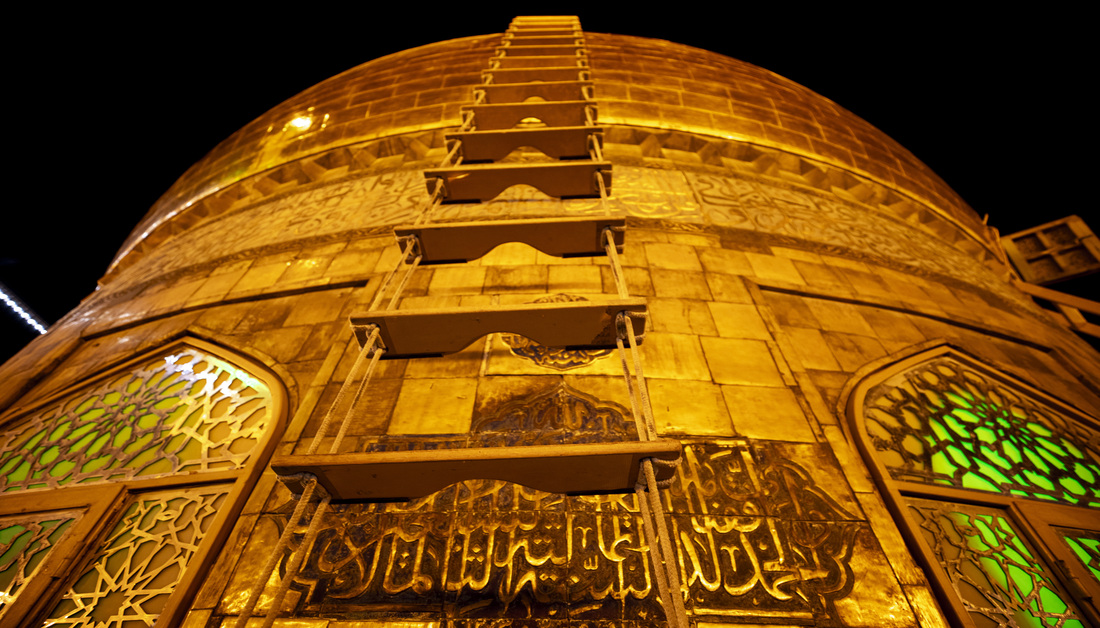 بالصور: رعاية واهتمام دائم.. السادة الخدم في العتبة الحسينية يؤدون غسل قبة مرقد الإمام الحسين (ع)