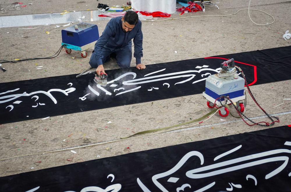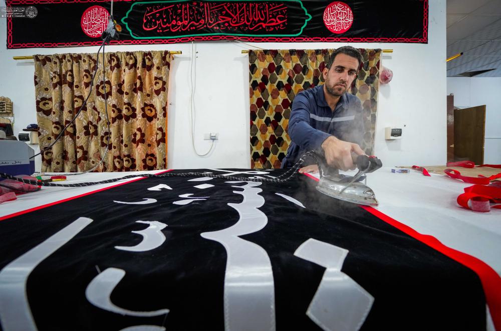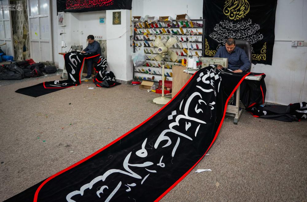 وبيَّن عبدُ الله أنَّ:" الورشة تعمل كذلك على تجهيز رايات الحزن لتثبيتها في مختلف المواقع والساحات في النجف الأشرف منها في مجسّرات الزهراء (عليها السلام) و ثورة العشرين وساحة الميدان في مدخل المدينة القديمة".
