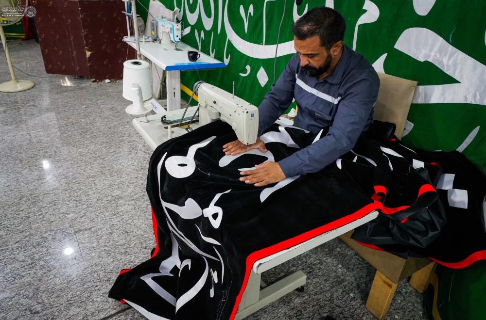 وأوضح الخادم حيدر عبد الله مسؤول وحدة التطريز للمركز الخبري أنَّ:" الورشة أنجزت اللافتات الخاصّة بإيوان الذهب والراية الرئيسة التي سترفع في الحرَم الطاهر إضافةً إلى نشر قطع الحزن في أرجاء الصحن العلويّ الشريف فضلًا عن القطع الخاصّة بواجهات جدار الحرم الخارجي" .