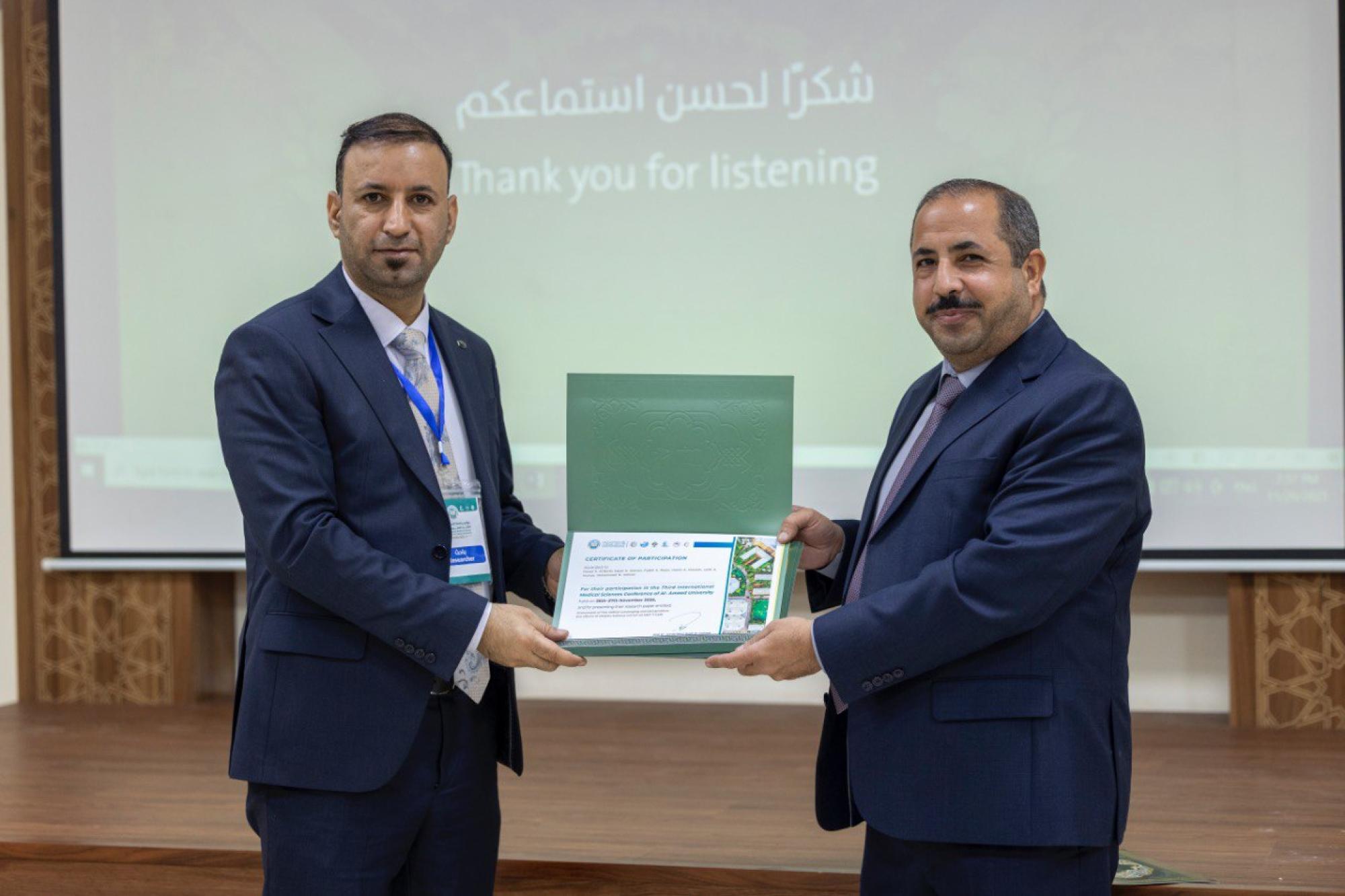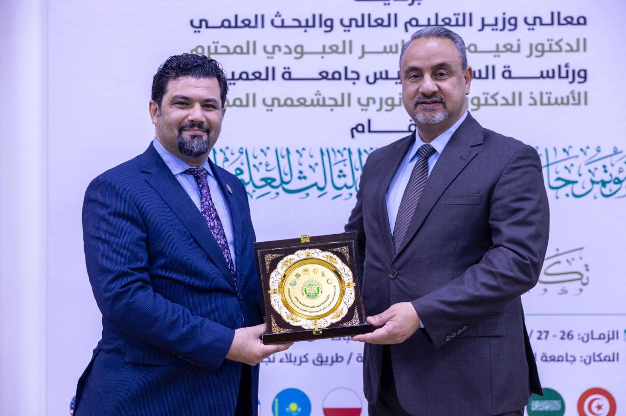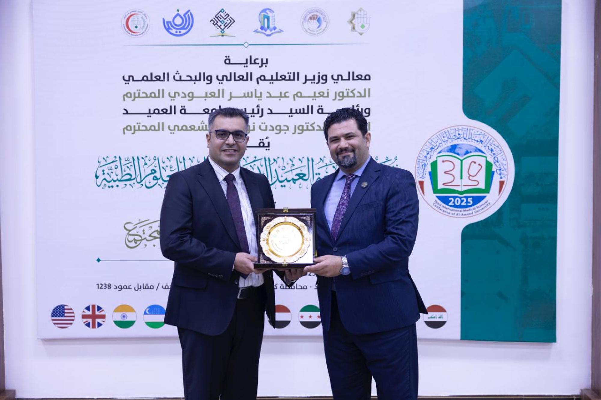 كرّمت جامعةُ العميد المشاركين والمساهمين في فعّاليات مؤتمر جامعة العميد الدوليّ الثالث للعلوم الطبّية في يومه الأوّل. وتقيم المؤتمر جامعةُ العميد برعاية العتبة العبّاسية المقدّسة وبالتعاون مع جامعة الكفيل ومستشفى الكفيل التخصّصي، تحت شعار (تكامل العلوم الطبّية في خدمة المجتمع)، بمشاركة أكاديميّين وباحثين من داخل العراق وخارجه، ويستمرّ يومَينِ. ويهدف المؤتمر إلى مواكبة التقدّم العلميّ في مجال العلوم الطبّية، وتعزيز جهود جامعة العميد في استثمار التجارب العالميّة، في تطوير الواقع الأكاديميّ الطبّي في العراق.