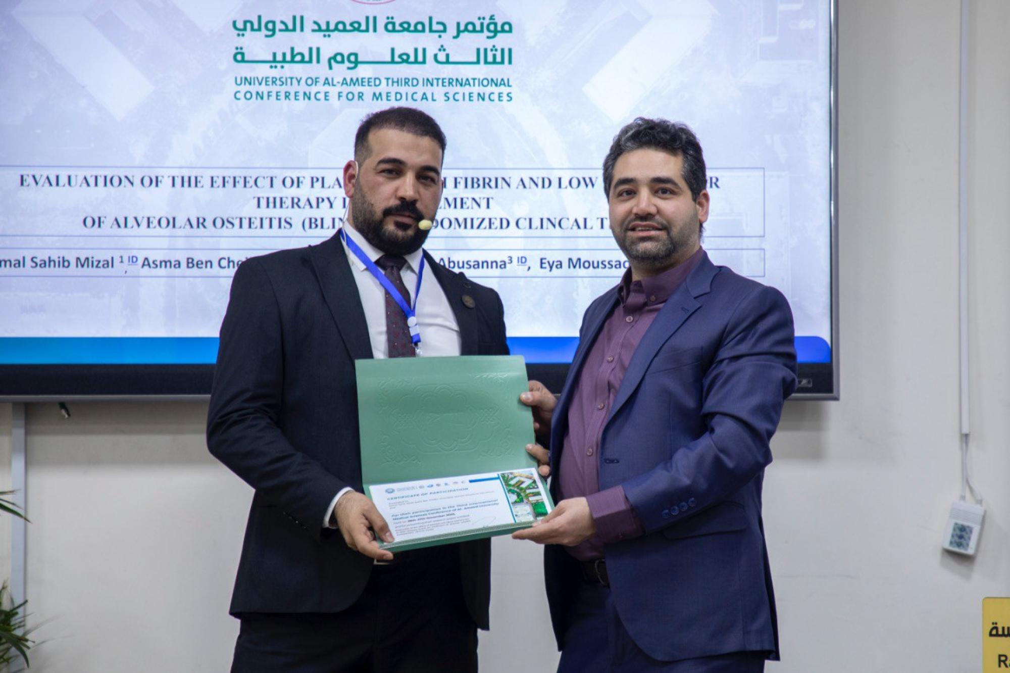 تكريم المشاركين في مؤتمر جامعة العميد الدولي الثالث للعلوم الطبّية في يومه الأول