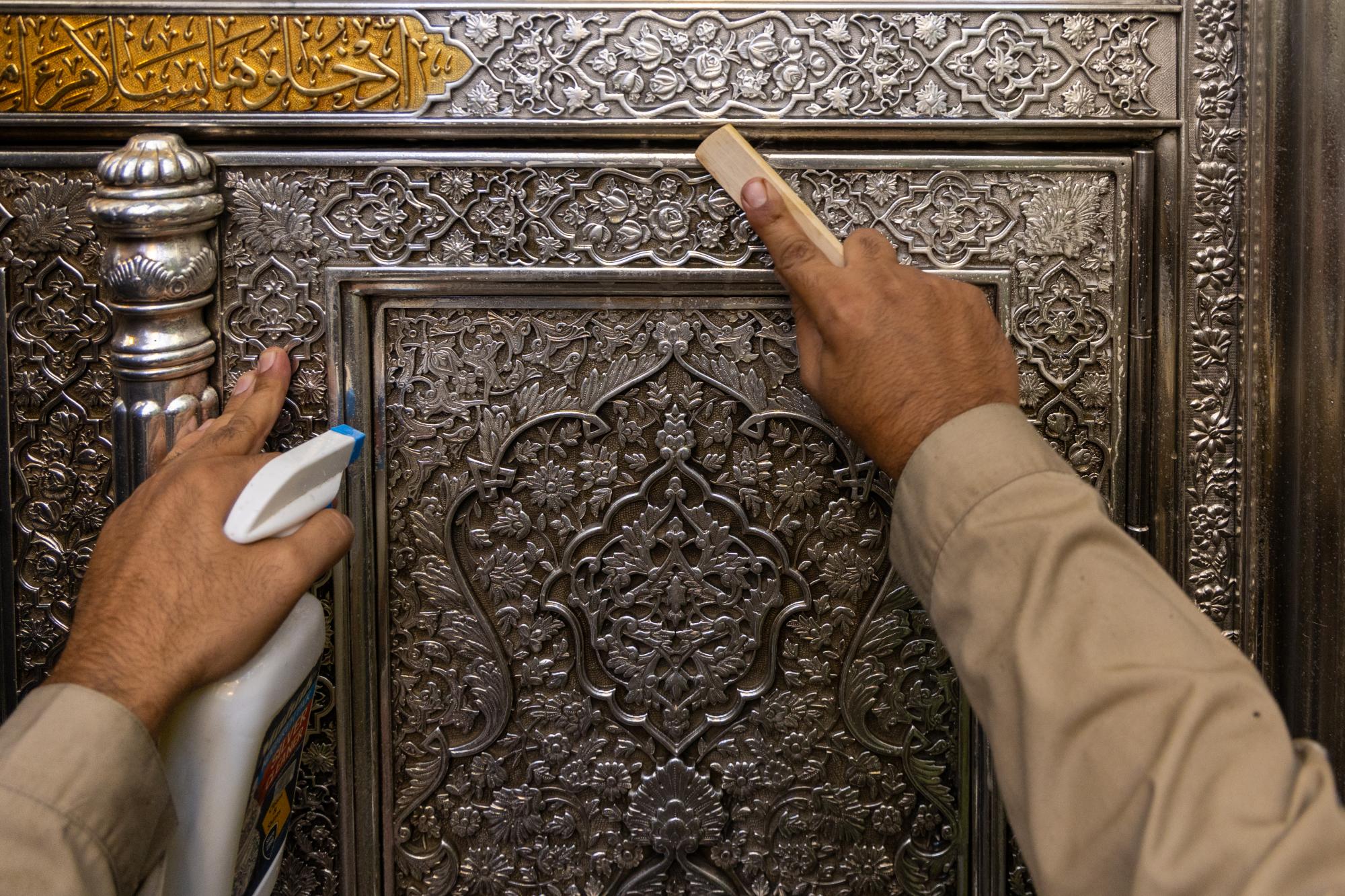 وبين أنَّ "ملاكات القسم تمتلك خبرة كبيرة في هذا المجال مما يمكنها من تنفيذ عملية تنظيف شبابيك الأضرحة الشريفة وصيانتها بما يتناسب مع قدسية المرقد الطاهر ومكانته ".
