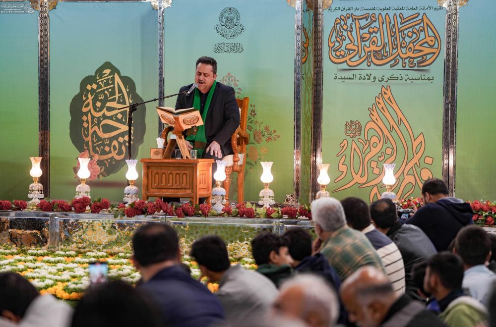 أقامت الأمانة العامّة للعتبة العلويّة المقدّسة ، ممثّلةً بدار القرآن الكريم التابعة لقسم الشؤون الفكرية والثقافية، المحفل القرآني في باحة الصحن العلويّ المطهّر ، وهو أحد فعاليات مهرجان العفاف السنوي الثامن عشر، الذي يقام بمناسبة ذكرى ولادة السيدة فاطمة الزهراء (عليها السلام).