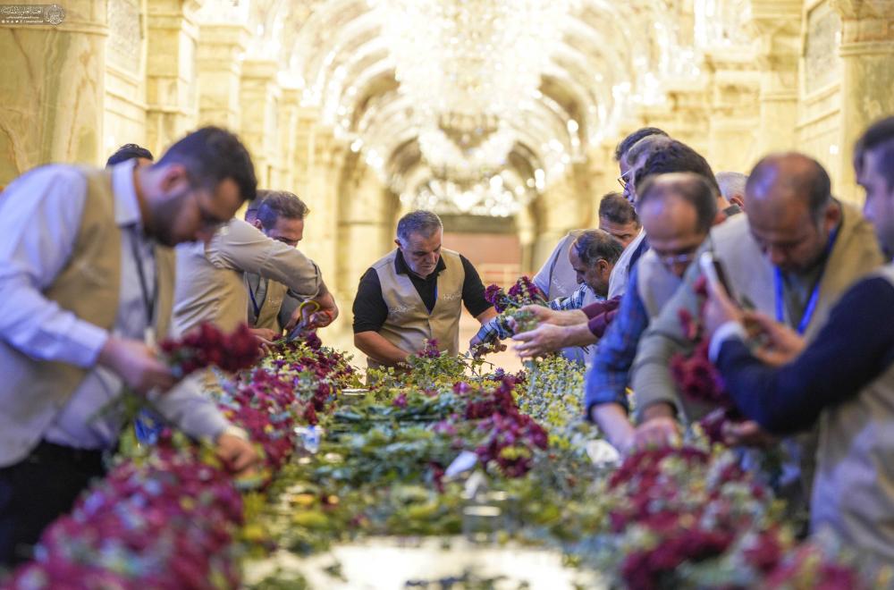 وقال الخادم بارق هادي، مسؤول وحدة تزيين الحرم العلوي المطهر، في تصريحٍ للمركز الخبري:" إن برنامج الاحتفال لهذا العام تضمن وضع أكاليل الورود الطبيعية في أروقة المرقد الطاهر وأواوينه المباركة بكمية تجاوزت 11 ألف وردة طبيعية.