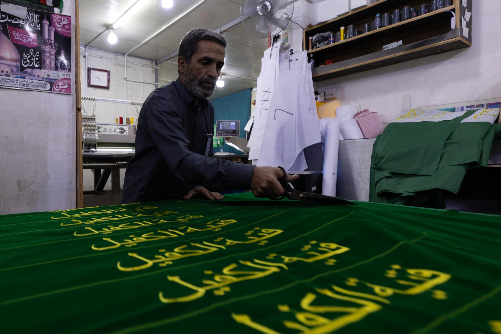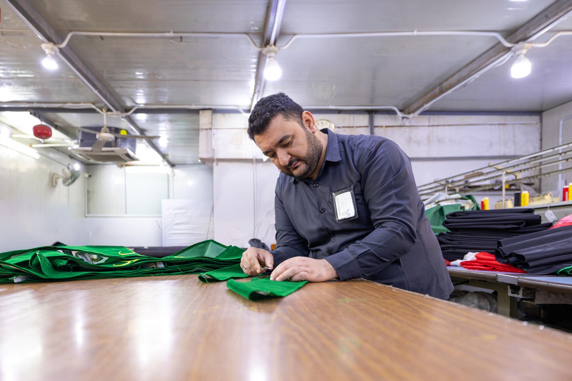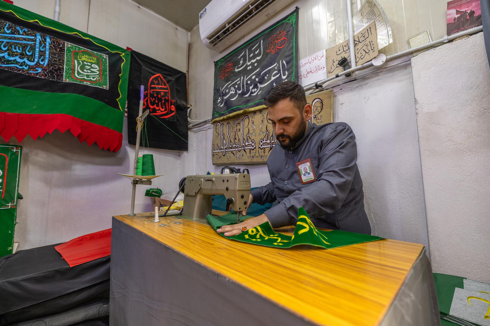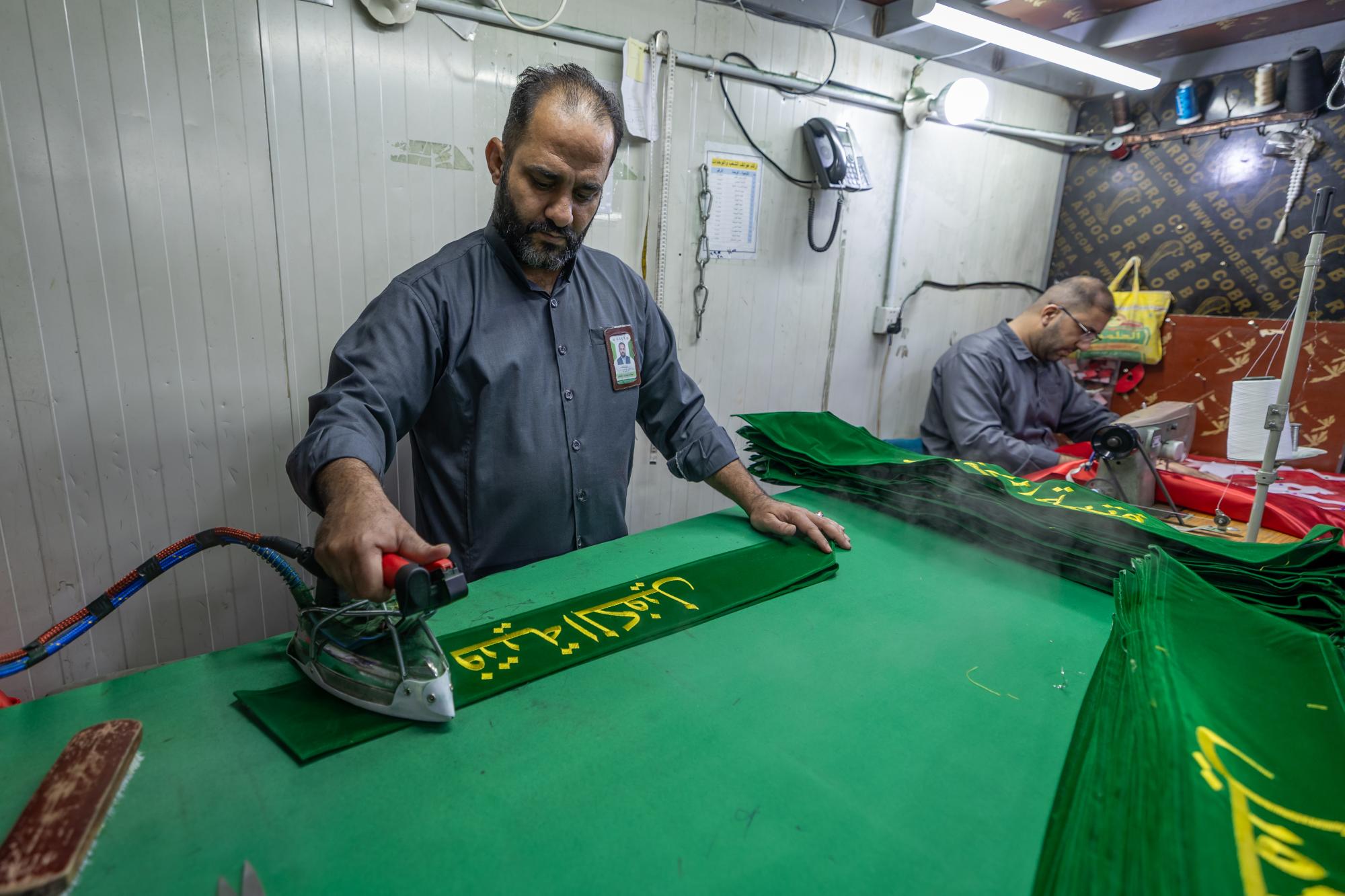 قسم الهدايا والنذور يباشر بخياطة أوشحة المشاركين في الحفل المركزي لتخرج طلبة الجامعات العراقية السادس
