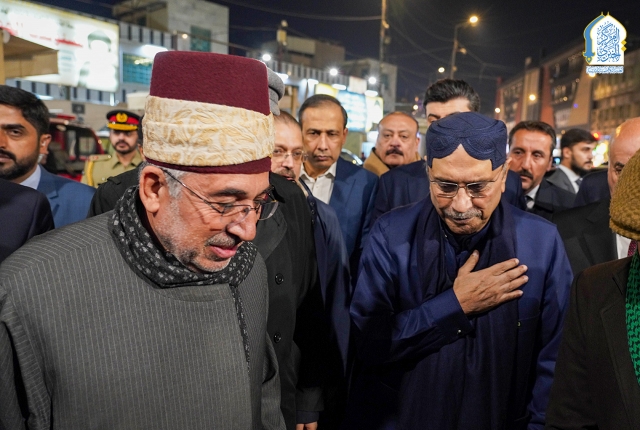 من جهته أعرب السيد زرداري عن بالغ سروره بهذه الزيارة المباركة، وقدّم شكره وامتنانه لحسن الضيافة وكرم الاستقبال داعياً بالتوفيق والسداد لجميع القائمين على خدمة الإمامين الكاظمين الجوادين "عليهما السلام".