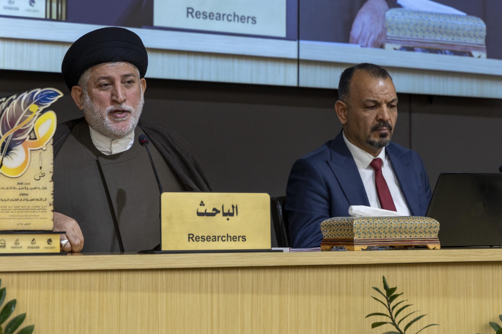 شهدت فعاليات الندوة العلمية الخاصة بالاحتفاء باليوم العالمي للغة العربية إقامة جلسة بحثية تسلط الضوء على دورها في العلوم الشرعية والفكرية. وأقيمت الندوة برعاية العتبة العباسية المقدسة، ونظمتها جمعية العميد العلمية والفكرية، بالتعاون مع مركز العميد الدولي للبحوث والدراسات التابع لقسم الشؤون الفكرية والثقافية والهيأة العليا لإحياء التراث في العتبة المقدسة. وجاءت الندوة تحت شعار: (لغتنا العربية سيدة اللغات) وبعنوان: (أثر اللغة العربية في العلوم الدينية)، وبحضور عدد من مسؤولي العتبة المقدسة إلى جانب الباحثين والمختصين. وترأس الجلسة الدكتور عادل نذير، نوقشت عبرها أربعة بحوث متنوعة شملت: (لغة التوحيد القرآني)، للباحث الدكتور عباس علي الفحام، وبحث (الشريعة في ضوء العربية نحو بناء منظومة فكرية ودراسة في العلاقات العلمية والمنهجية)، للباحث الدكتور صالح كاظم الجبوري، و(أثر الفكر النحوي في بناء قواعد أصول الفقه دراسة تحليلية في ضوء النظر اللغوي الفقهي)، للباحث الدكتور حيدر جبار عيدان، فيما اختُتمت الجلسة بمناقشة البحث الموسوم (المباحث اللغوية وأثرها في استنباط الأحكام الشرعية) للباحث الدكتور مهند مصطفى جمال الدين. وقال رئيس الجمعية، الدكتور رياض طارق العميدي: إنَّ ندوة الاحتفاء العالمي بيوم اللغة العربية تضمنت مناقشة مجموعة من البحوث التي بيَّنت أهمية اللغة العربية بوصفها الوعاء الأساسي للوعي الديني والفكري والثقافي، مشيرًا إلى أنَّ الندوة ركزت على إبراز مكانة اللغة في مختلف العلوم الشرعية والفكرية.