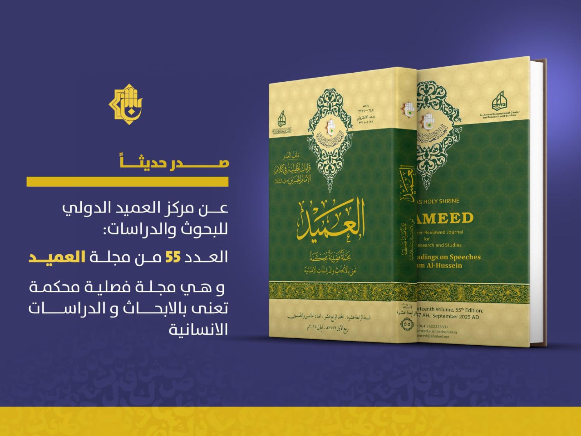 أصدر قسم الشؤون الفكرية والثَقافية في العتبة العباسية المقدسة، العدد 55 من مجلة العميد المحكمة. ويشرف على الإصدار مركز العميد الدولي للبحوث والدراسات التابع للقسم. وتضمّن العدد الجديد سبعة أبحاث في الدراسات الإنسانية، إضافةً إلى ملف خاص بعنوان: (قراءات تحليلية في كلام الإمام الحسين -عليه السلام-)، اشتمل على ثلاثة أبحاث قدّمت مقاربات معرفية معمّقة في دعاء عرفة والمعرفة القرآنية وخطب الإمام الحسين (عليه السلام).