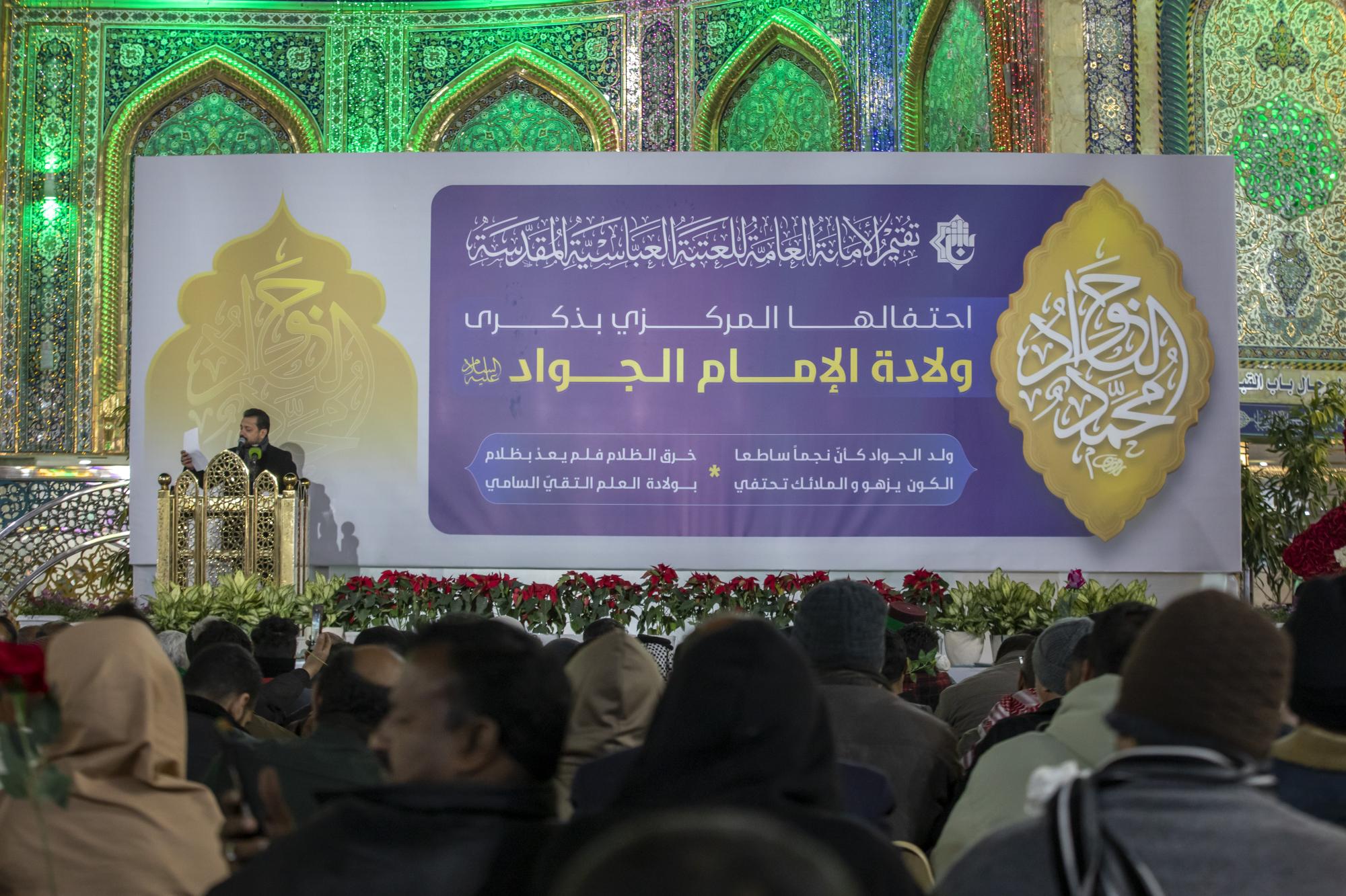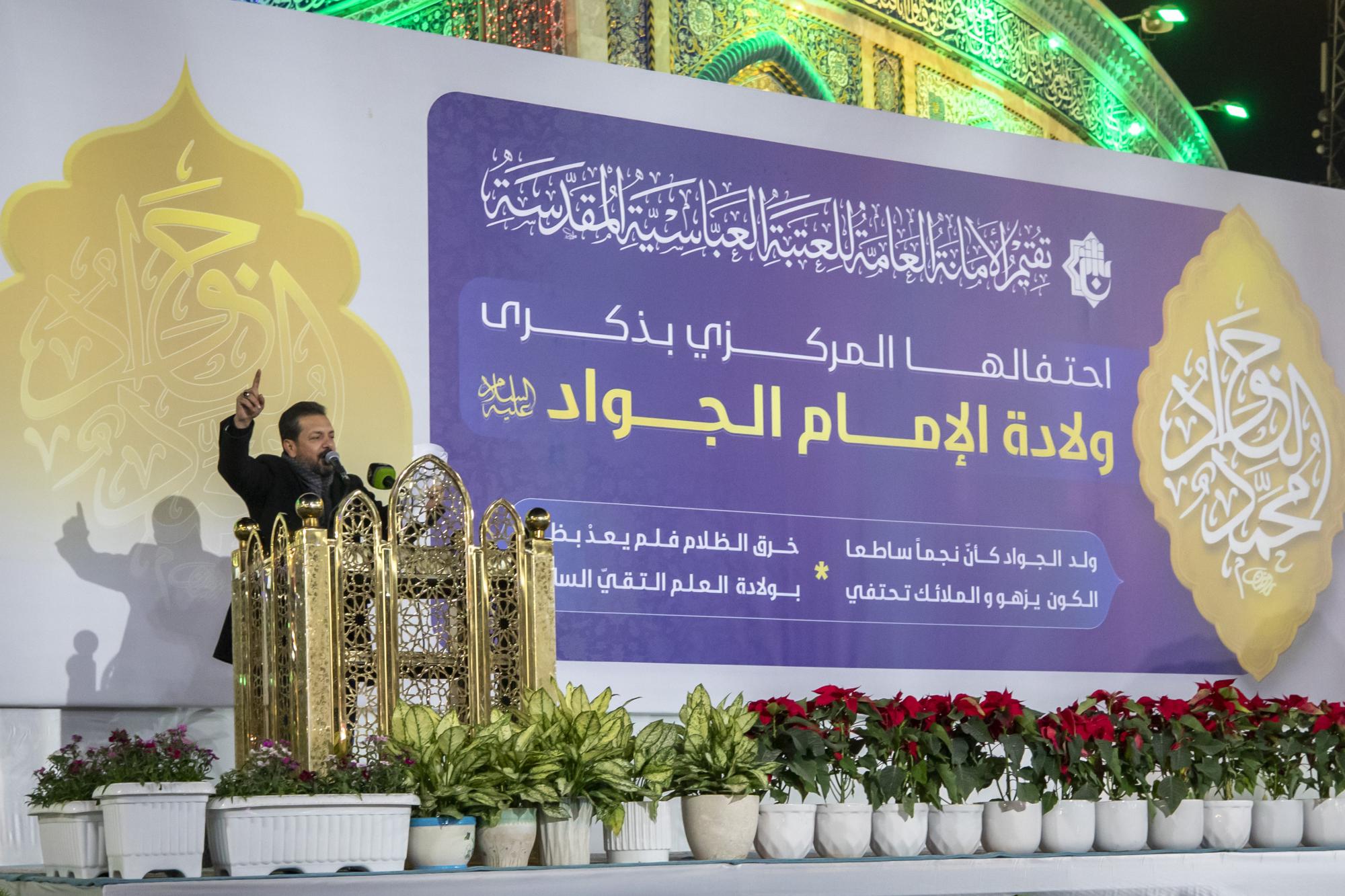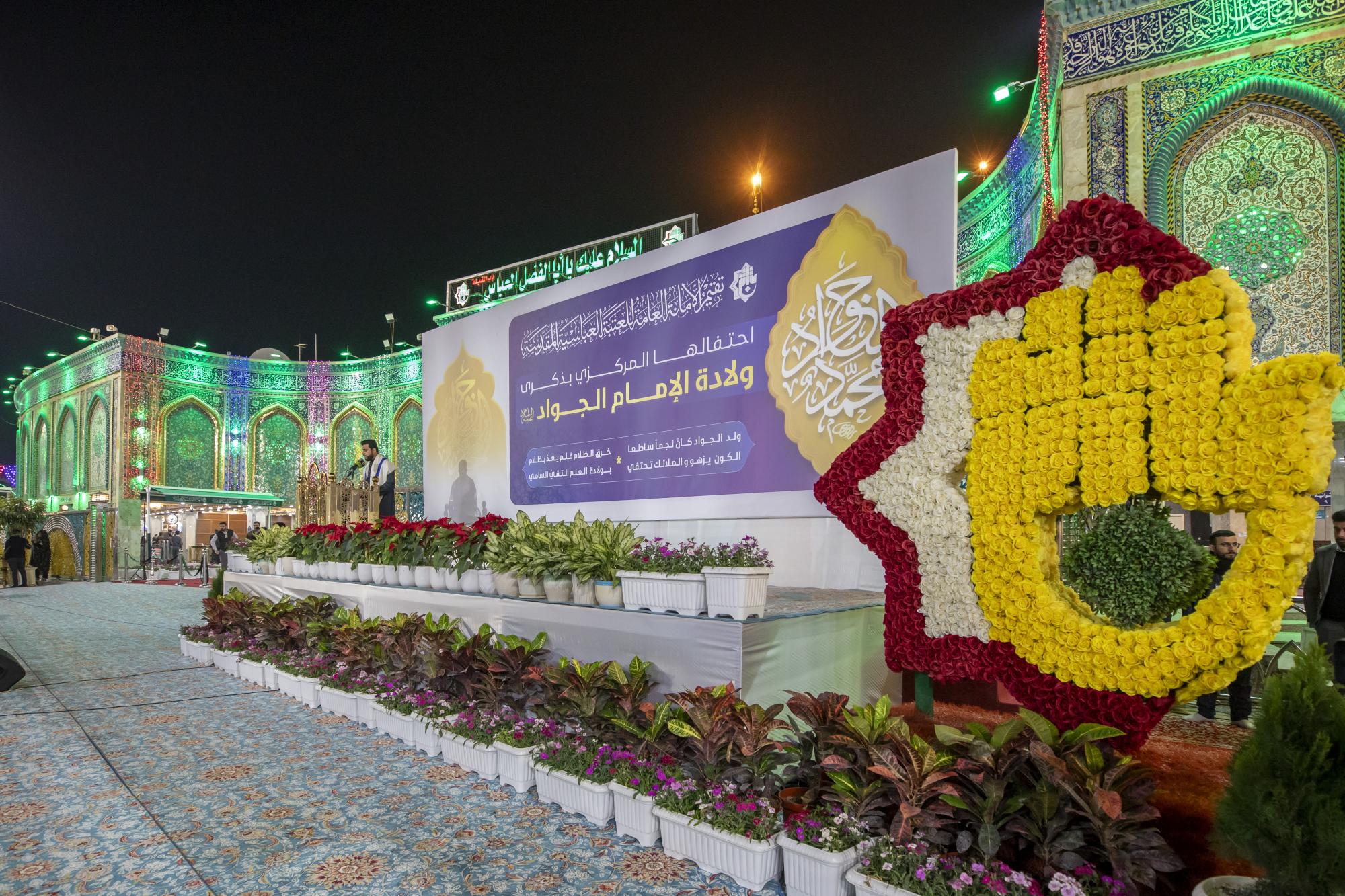 نظّمت العتبة العبّاسيّة المقدسة احتفالها المركزيّ السنويّ الخاص بمناسبة ذكرى ولادة الإمام محمد الجواد (عليه السلام). وشهد الحفل الذي أُقيم في باحة باب القبلة لمرقد أبي الفضل العباس (عليه السلام) حضور عضو مجلس إدارة العتبة المقدسة الدكتور أفضل الشامي وعدد من المسؤولين فيها، إلى جانب جمع غفير من الزائرين. واستُهلّ الحفل بتلاوة آيات من الذكر الحكيم، أعقبتها كلمة الأمانة العامّة للعتبة العباسية المقدسة ألقاها الشيخ علي موحان، إذ ابتدأها بتقديم التهاني للحاضرين وللأمّة الإسلاميّة بحلول ذكرى الولادات الرجبية الخاصّة بالأئمة المعصومين (عليهم السلام). وتطرّق موحان في كلمته إلى جوانب من سيرة حياة الإمام الجواد (عليه السلام) ومناقبه ودوره في ترسيخ القيم الإسلامية ونشر العلوم والمعارف وتعاليم الإسلام. وقال عضو لجنة الاحتفالات المركزية في العتبة المقدسة السيد عقيل الياسري: إنّ "فعاليات الحفل المركزي تضمّنت فقرات متنوّعة، منها: إلقاء الكلمات الاحتفائية، والقصائد الشعرية، والأناشيد الخاصة بالذكرى المباركة".