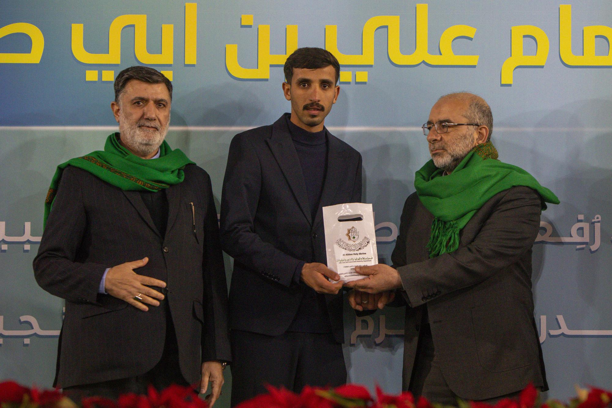 كرّمت العتبة العبّاسيّة المقدّسة، الفائزين بمسابقتها الثقافيّة الإلكترونيّة الخاصّة بذكرى ولادة أمير المؤمنين الإمام علي بن أبي طالب (عليه السلام). جاء ذلك ضمن فعّاليّات الحفل المركزي السنويّ الذي أقامته العتبة المقدّسة في باحة باب القبلة لمرقد أبي الفضل العبّاس (عليه السلام) بالمناسبة العطرة. وبلغ العدد الكلي للمشاركين 6733، حصل 3811 مشاركًا منهم على الدرجة الكاملة 100%، وتم اختيار 10 فائزين عَبرَ إجراء قرعة إلكترونية جرى تكريمهم من قِبل كل من عضو مجلس إدارة العتبة المقدسة الدكتور أفضل الشامي وعضو لجنة الاحتفالات فيها السيد عقيل الياسري ومسؤول شعبة السادة الخدم السيد هاشم الشامي.