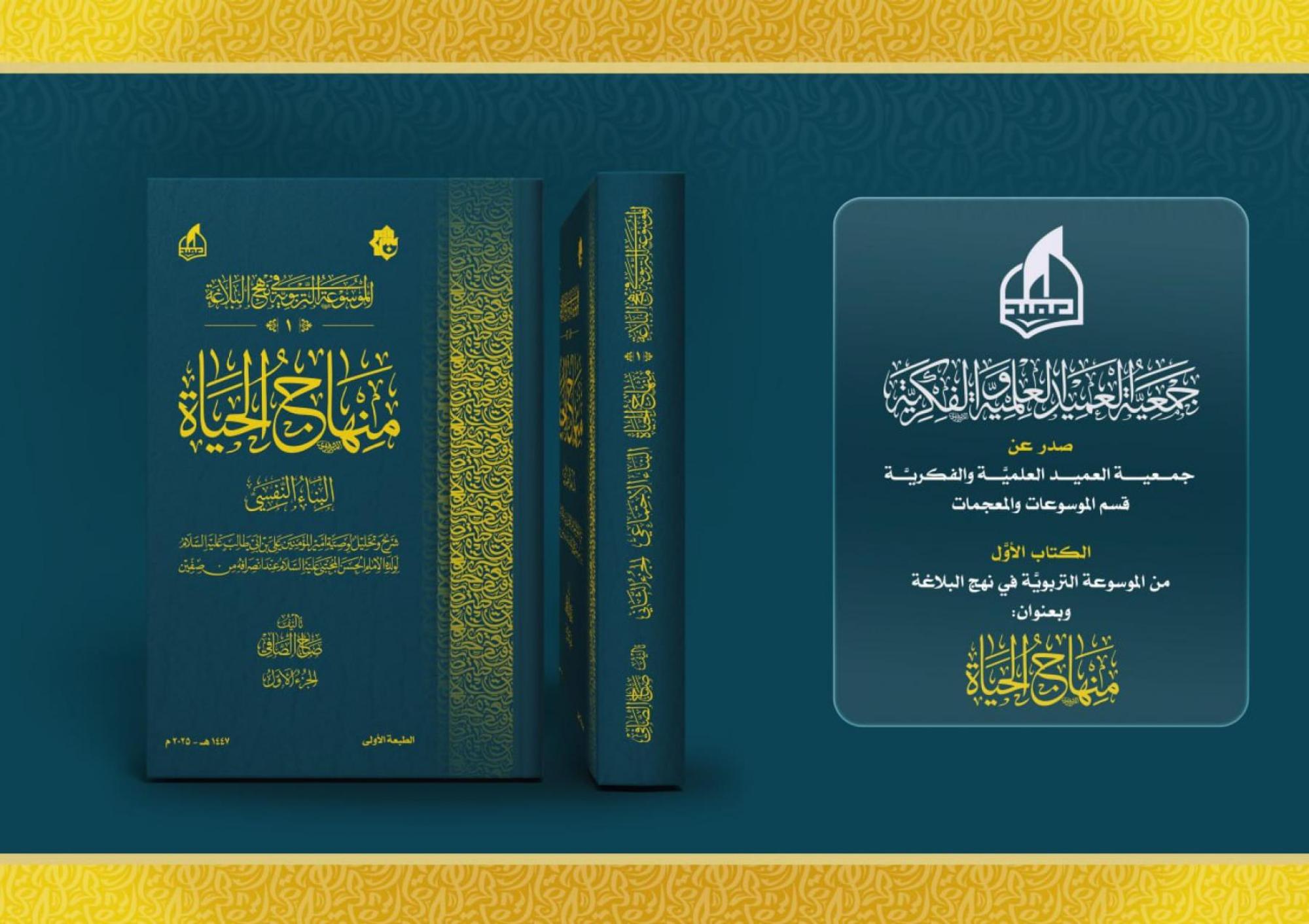 أصدر قسم الموسوعات والمعجمات في جمعية العميد العلمية والفكرية الكتاب الأول من الموسوعة التربوية في نهجِ البلاغة. وجاء الكتاب على جزأين؛ الأول وسم: بـ (منهاج الحياة – البناء النفسي)، والثاني (منهاج الحياة – البناء الاجتماعي). وضم الكتاب شرحًا وتحليلًا لوصية أمير المؤمنين الإمام علي بن أبي طالب لولده الإمام الحسن (عليهما السلام)، عند انصرافه من معركة صفين، للمؤلف السيد صباح نعيم الصافي. وقال رئيس القسم، الدكتور كريم حسين ناصح الخالدي: إنّ "هذه الموسوعة تمثل نافذة نطل عبرها على النهج التربوي الذي اتبعه الإمام علي بن أبي طالب (عليه السلام) في بناء الإنسان بناءً إسلاميًّا، تتجلى فيه كل القيم السامية التي تجعل المسلم يسير على الصراط المستقيم في سلوكه ومعاملاته، وارتباطه بغيره من البشر". وأضاف أنّ "الحياة الطيبة التي أرادها الإسلام تعتمد أساسًا القيم الروحية والأخلاقية والتربوية في حياة المسلمين، ومن تلك القيم يسمو المجتمع الإسلامي، ليكون الإنسان فيه قيمة عليا، يتمتع بكل الحقوق التي أتاحها له الإسلام في أطر العدالة والمساواة، ويلتزم بكل الواجبات التي تضمن تحقيق المبادئ الإسلامية للوصول إلى بناء المجتمع الإسلامي الملتزم بالقوانين الإلهية". من جانبه أوضح مؤلف الكتاب، السيد صباح الصافي، أنّ "الحاجة تطلبت إعادة قراءة نصوص كتاب (نهج البلاغة) من زوايا جديدة، بسبب تسارع التقدم العلمي والمعرفي في عصرنا، ومن هنا تأتي (الموسوعة التربوية في نهج البلاغة) لتكون إحدى تلك المحاولات التي تسعى إلى الربط بين تعاليم الإمام علي (عليه السلام) وحاجات التربية الحديثة". وأضاف أنّ "القيم التربوية التي وردت في (نهج البلاغة) تمثل مرجعًا خالدًا في توجيه الإنسان وبناء المجتمعات على أسس العدل والحق والكرامة الإنسانية، وبناء على ذلك نشأت فكرة تأليف هذه الموسوعة التي تهدف إلى تحقيق مجموعة من الأهداف".
