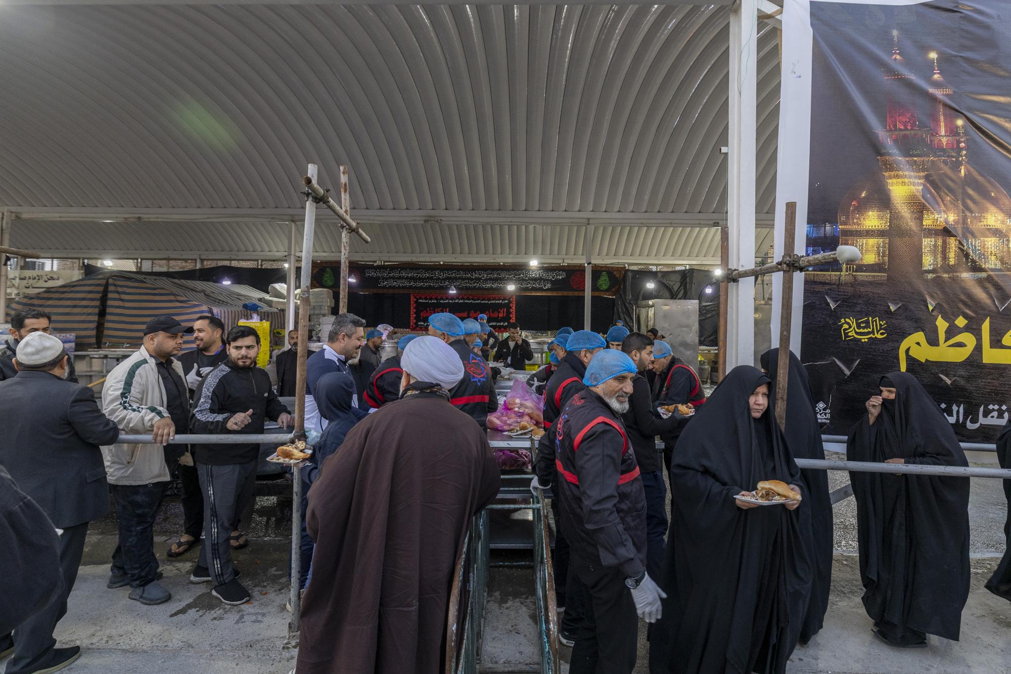شرعت العتبة العباسية المقدسة بتقديم خدماتها لزائري مرقد الإمام موسى الكاظم (عليه السلام) في مدينة الكاظمية ببغداد، بذكرى شهادته الأليمة. وقال رئيس وفد العتبة المقدسة السيد خليل مهدي هنّون: إنّ "موكب العتبة المقدسة اعتاد بشكل سنوي على تقديم خدماته المتنوّعة لزائري مرقد الإمام موسى بن جعفر الكاظم (عليه السلام) بمناسبة ذكرى شهادته الأليمة". وأضاف "يقدم الموكب خدماته عبر موقعين: الأوّل في شارع صاحب الزمان (عجّل الله فَرَجه)، والآخر في شارع باب المراد ويجري التنسيق مع العتبة الكاظمية المقدسة والجهات المعنية لافتتاح مواقع أخرى للموكب مع تزايد أعداد الزائرين". وأوضح أنّ "ثلاث وجبات طعام رئيسة تقدّم يوميًّا للزائرين، إضافةً إلى الوجبات البينية" لافتًا إلى أنّ "العديد من أقسام العتبة المقدسة تشارك في تقديم مختلف الخدمات".