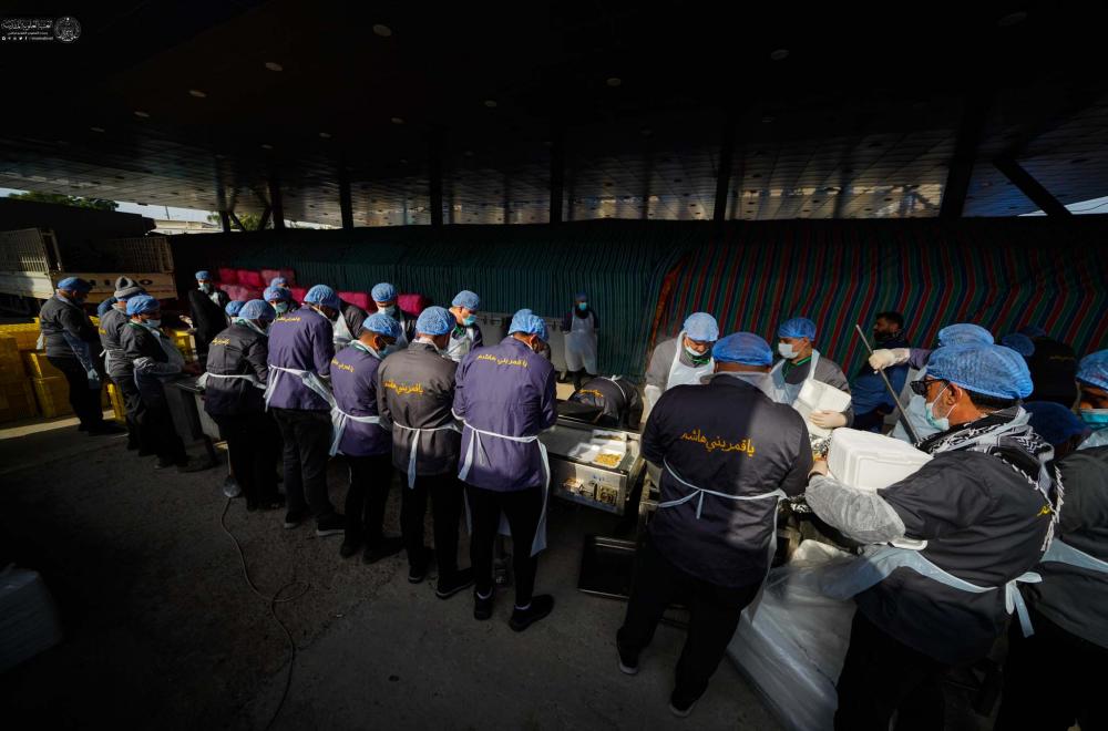 باشر الخَدَم العاملون في قسم مضيف الزائرين في العتبة العلويّة المقدّسة بتهيئة وجبات الضيافة لحشود الزائرين الوافدين إلى مدينة الكاظمية المقدّسة لإحياء مراسم ذكرى شهادة الإمام موسى بن جعفر (عليه السلام)، وذلك ضمن برنامج موكب العتبة العلويّة المقدّسة ، الذي وصلت طلائعه إلى محيط مرقد الإمامين الكاظمين (عليهما السلام)، بمشاركة أكثر من (250) خادمًا ومتشرفًا بالخدمة.
