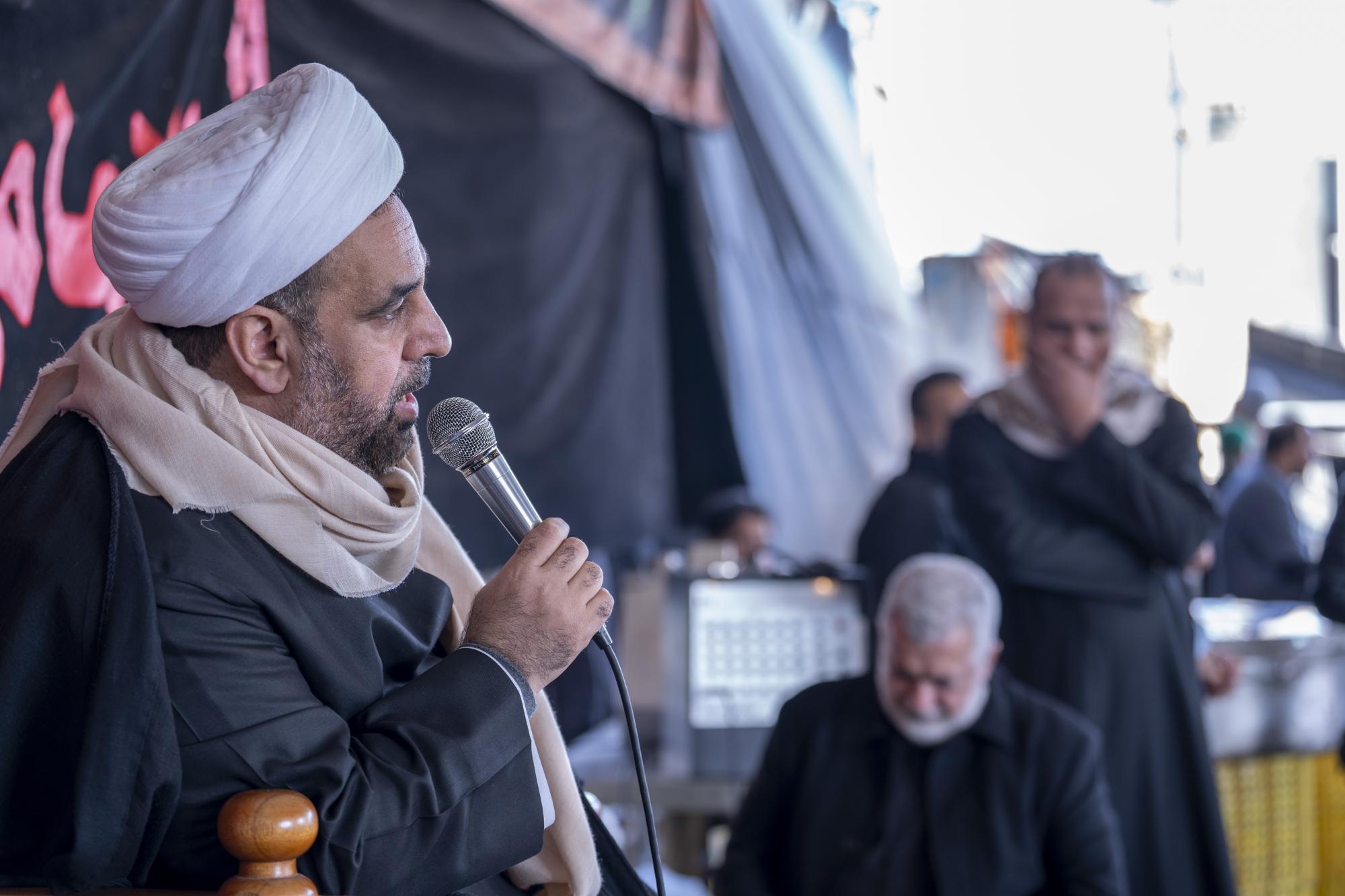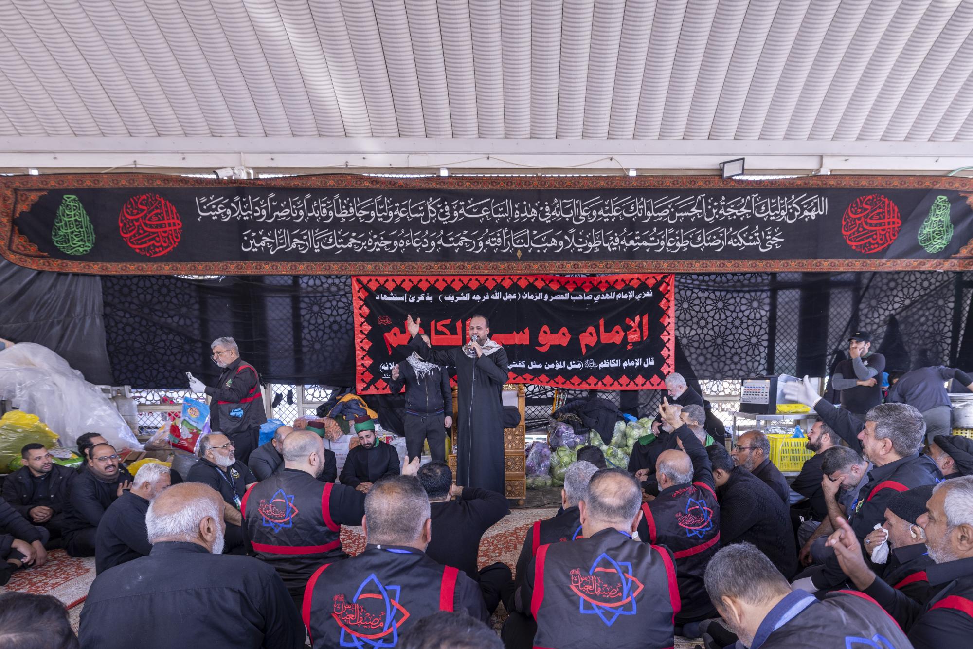 خدمة موكب العتبة العباسية المقدسة يقيمون مجلس عزاء بذكرى شهادة الإمام الكاظم (عليه السلام) قرب مرقده الطاهر