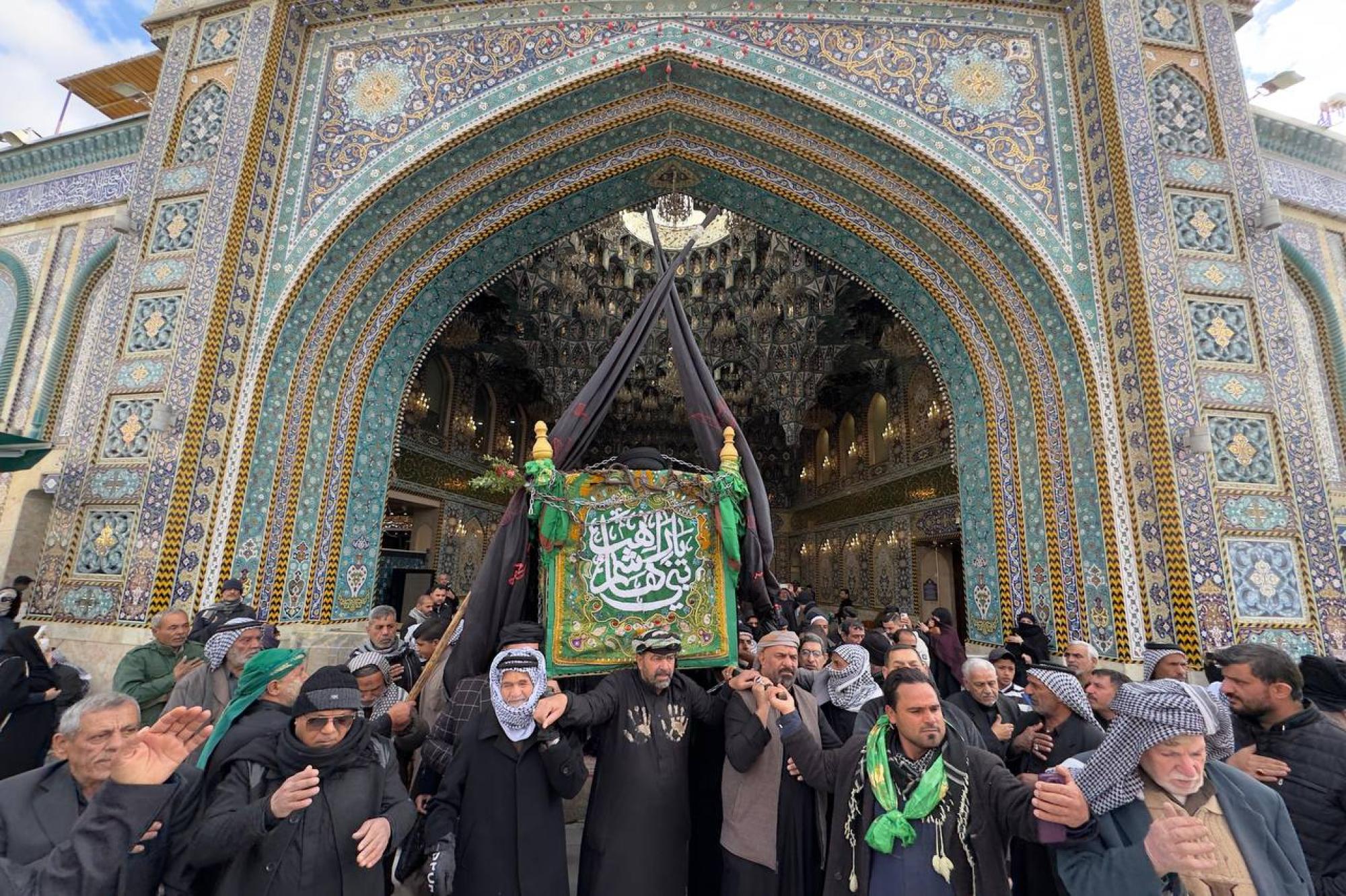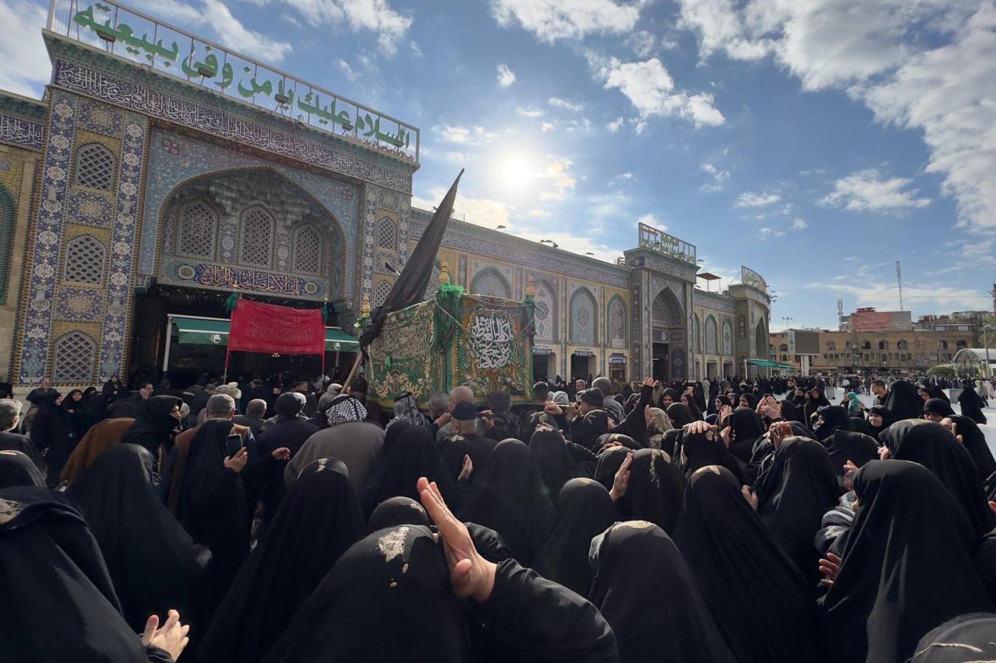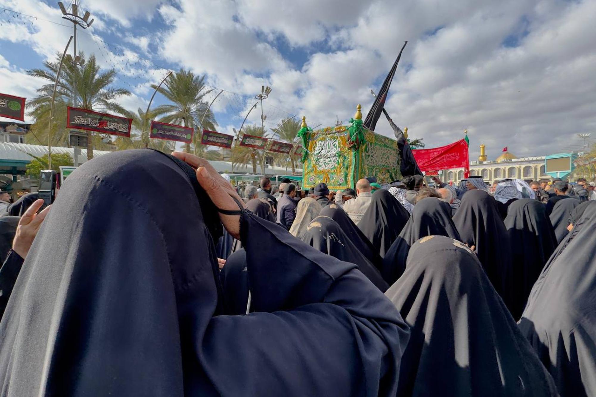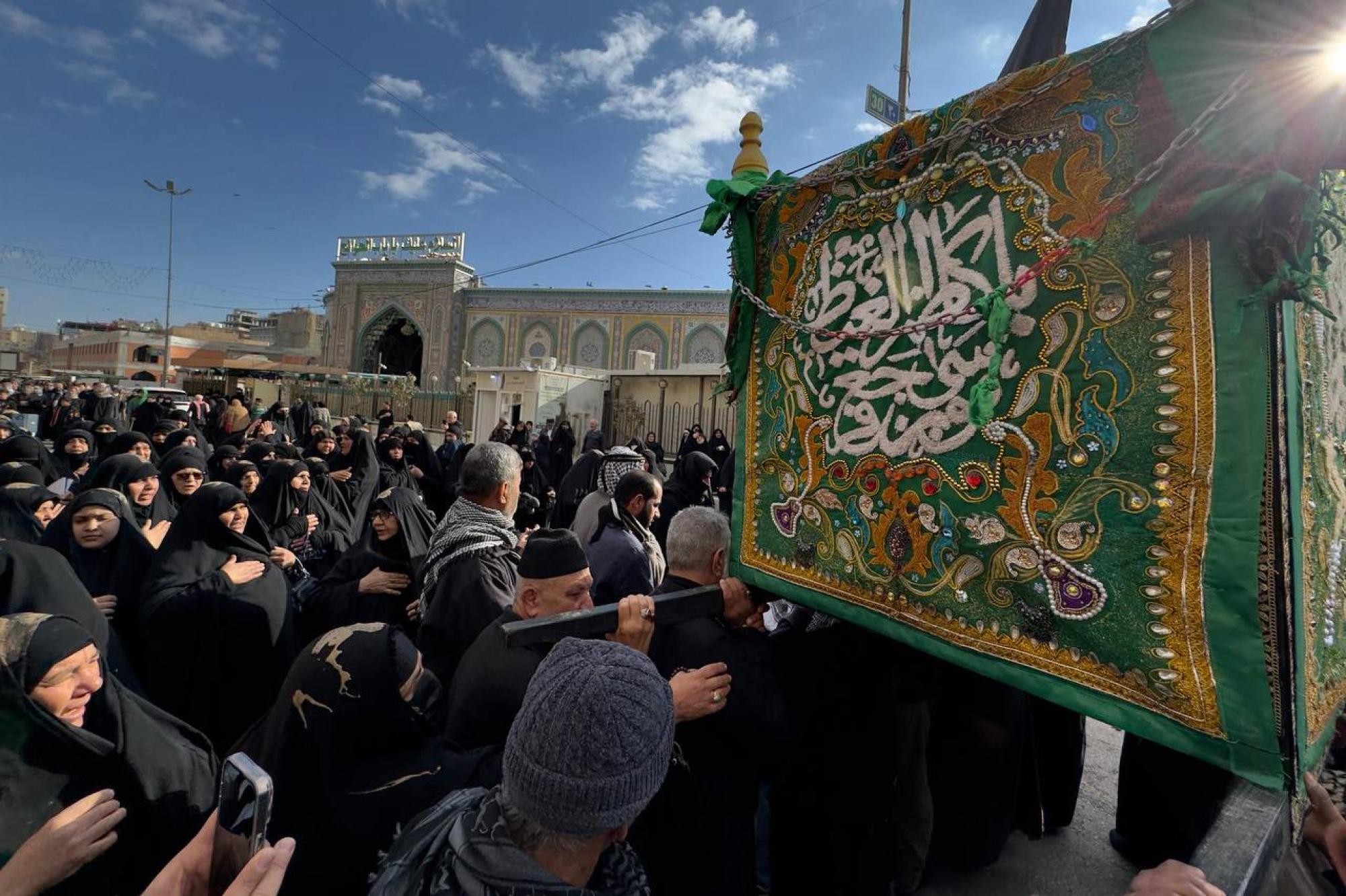 جموع المؤمنين تشيّع النعش الرمزي للإمام الكاظم (عليه السلام) عند العتبتين المقدستين