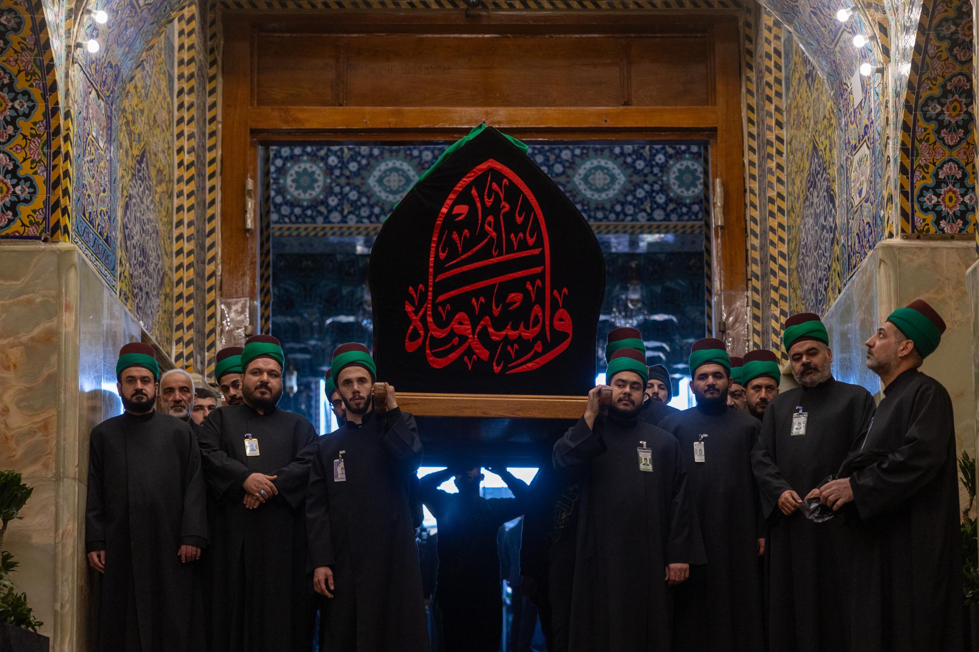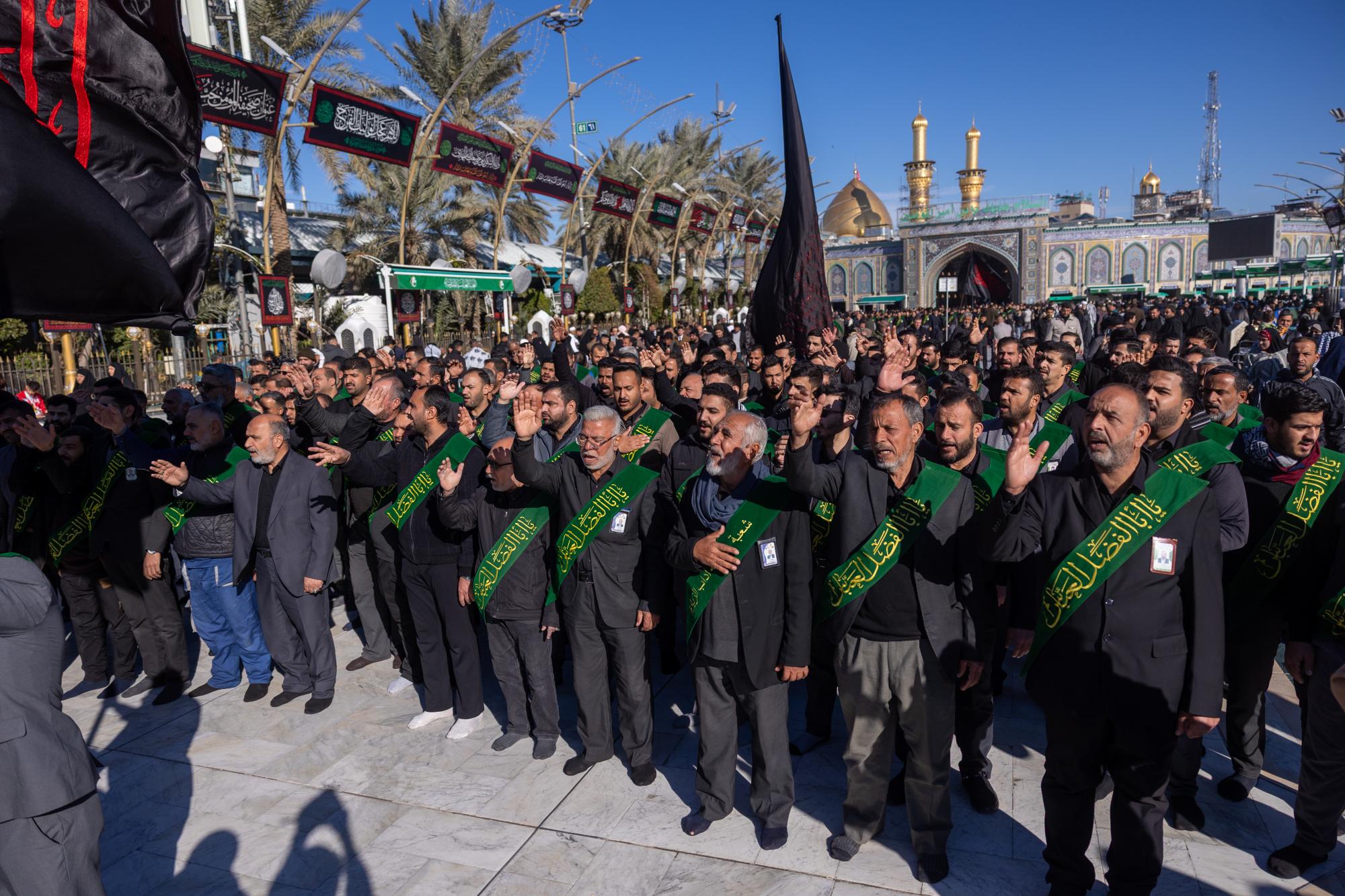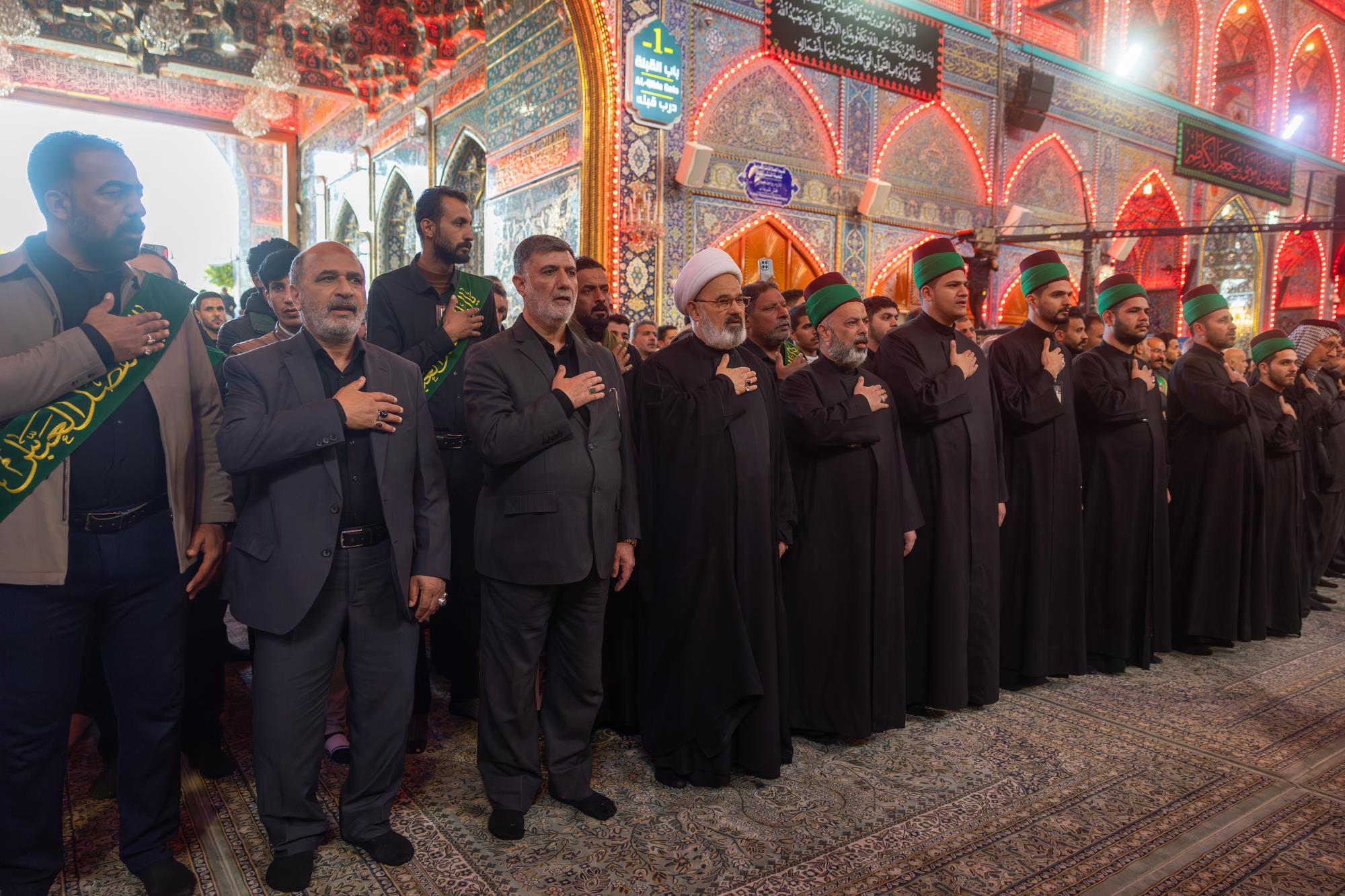 أحيا موكب عزاء خَدمَة العتبتين المقدّستين الحسينية والعبّاسية، ذكرى شهادة الإمام موسى الكاظم (عليه السلام). وشهد الموكب مشاركة عضو مجلس إدارة العتبة العبّاسية المقدّسة، الدكتور أفضل الشامي، إلى جانب عددٍ من خَدمَة العتبتين المقدّستين. وانطلق الموكب من صحن مرقد أبي الفضل العبّاس (عليه السلام)، مرورًا بساحة بين الحرمين الشريفَيْن، وصولًا إلى مرقد الإمام الحسين (عليه السلام)؛ لتعزيته بهذه المناسبة الأليمة، إذ ردَّد المعزّون في مسيرهم كلماتٍ جسّدت مشاعر الحزن والأسى. وتضمنت مراسم العزاء رفع النعش الرمزي للإمام الكاظم (عليه السلام)؛ للتعبير عن الحزن والمواساة بهذه الذكرى الأليمة.