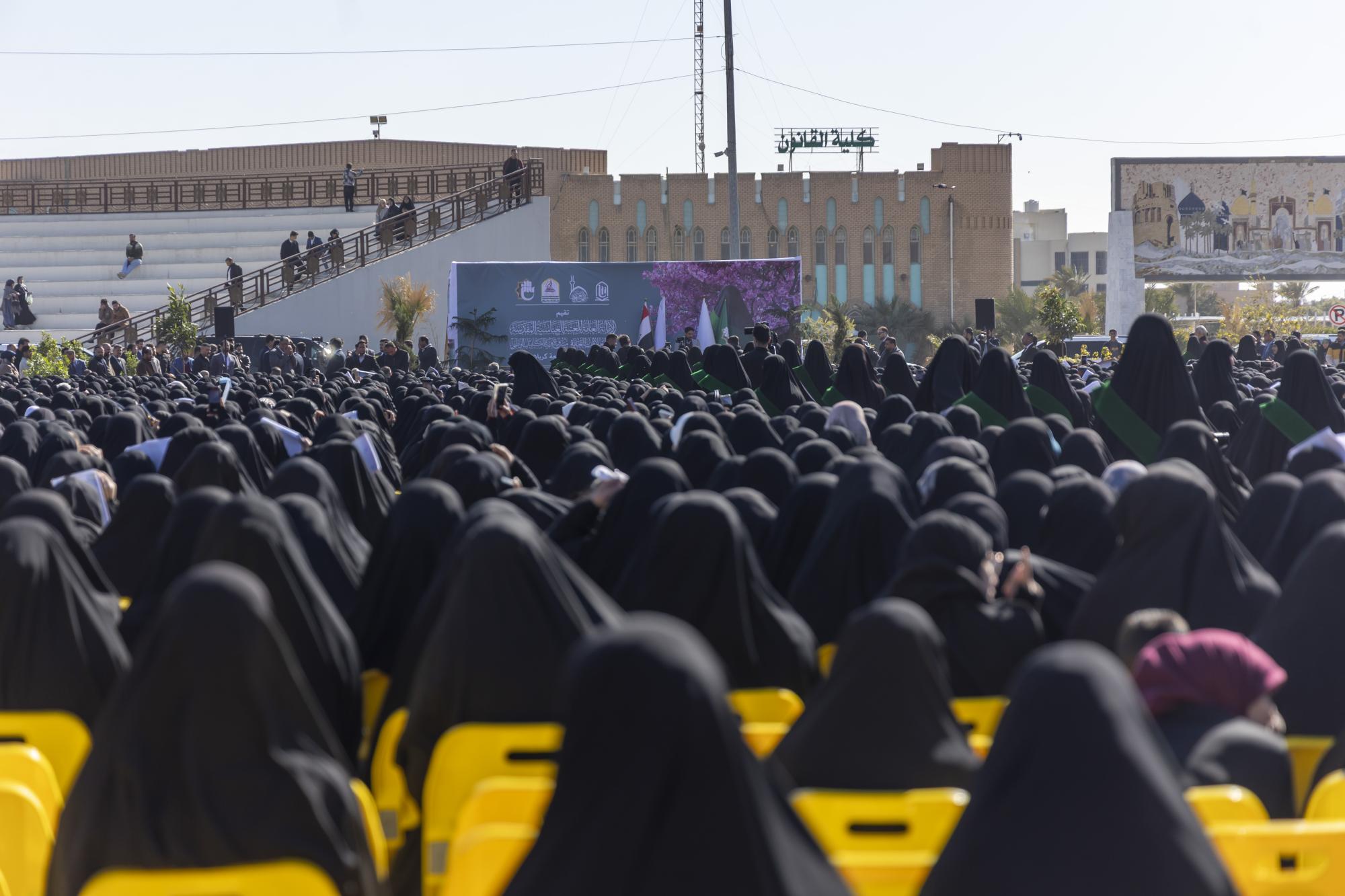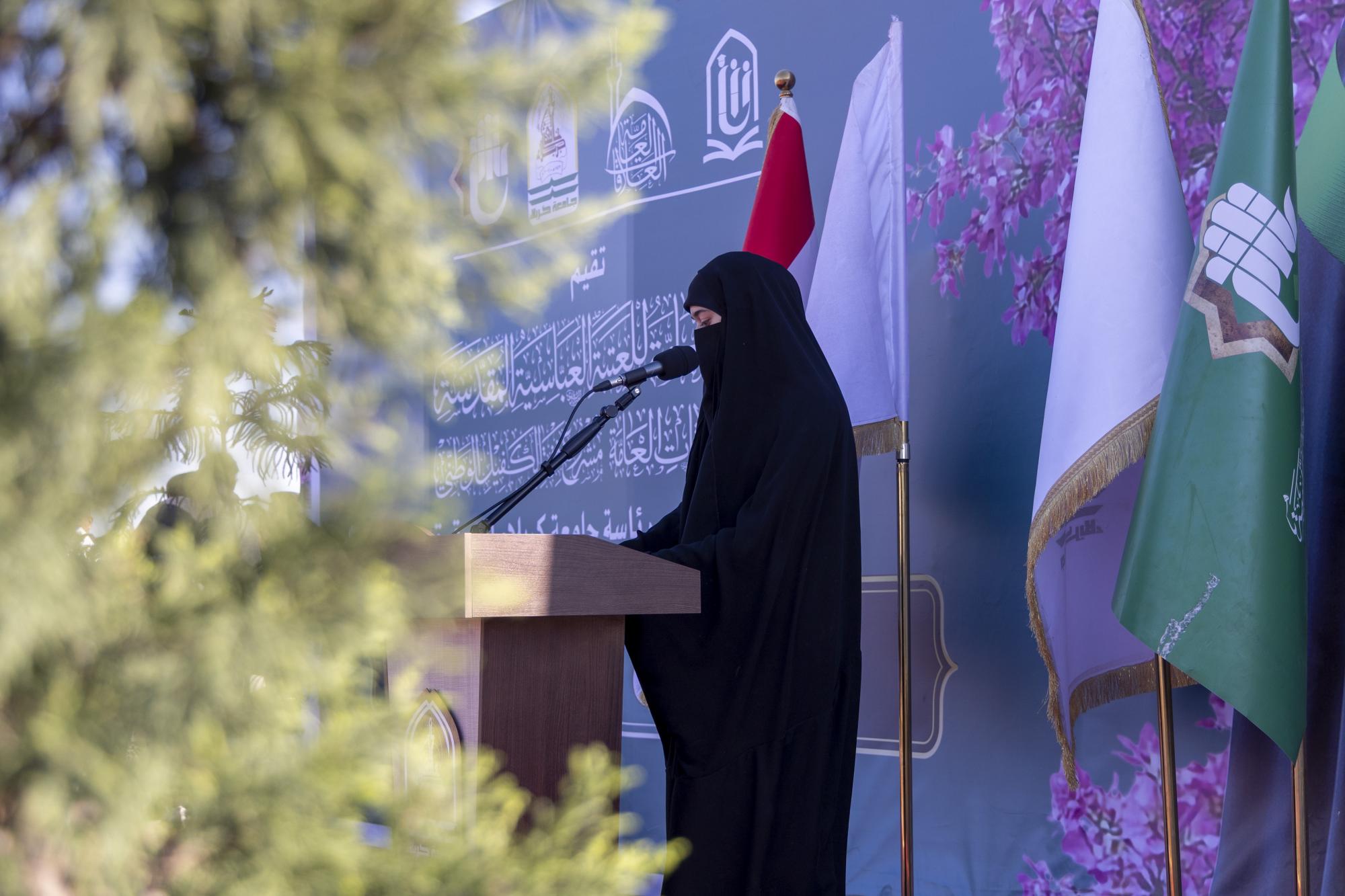 أكّدت طالبات جامعة كربلاء أنّ تكريم العتبة العباسية المقدسة للطالبات الجامعيات رسالة دعم للقيم الأصيلة في الحرم الجامعي. جاء ذلك في كلمة الطالبات التي ألقتها الطالبة وردة حبيب عبد الحسين، خلال فعاليات مهرجان إكليل العفّة لتكريم الطالبات المرتديات للعباءة العراقية في جامعة كربلاء، الذي نظمته شعبة العلاقات الجامعية والمدرسية التابعة لقسم العلاقات العامة في العتبة العباسية المقدسة، ضمن مشروع فتية الكفيل الوطني، وبالتعاون مع جامعة كربلاء، وشهد المهرجان تكريم أكثر من 2700 طالبة. وقالت عبد الحسين: "يشرفني اليوم أن أقف بين أيديكم ممثلة عن طالبات اخترن العباءة لا بوصفها لباسًا فحسب بل موقفًا واعيًا وهوية راسخة ورسالة نعتز بها داخل جامعتنا لنبرهن أنّ العباءة التي نرتديها لم تكن يومًا عائقا أمام الطموح ولا حاجزًا أمام العلم بل كانت عنوانًا للوعي ودليلًا على أنّ الطالبة العراقية قادرة على الجمع بين التفوّق الأكاديمي والالتزام القيمي وبين الحضور الجامعي والهوية الأصيلة". وأضافت "نقف اليوم بفخر واعتزاز أمام هذا التكريم الذي يجسّد ثمرة التعاون بين العتبة العباسية المقدسة وجامعة كربلاء الذي يعكس إيمان المؤسستين بدور الطالبة الجامعية وحرصهما على دعم النماذج الواعية التي تمثّل القيم الأصيلة داخل الحرام الجامعي". وبيّنت أنّ "هذا التكريم ليس احتفاءً بزيٍّ فحسب بل هو احتفاء بخيار نابع من القناعة وبصورة مشرقة للمرأة الجامعية التي تثبت أنّ الحشمة والعلم طريق واحد وأنّ الالتزام لا يتعارض مع النجاح بل يعززه ويمنحه معنى أعمق من هذا المنبر نعاهدكم أنّنا سنبقى على هذا النهج طالبات مجتهدات وحاضرات بوعي ومتمسكات بقيمنا لنكون شريكات حقيقيات في بناء مجتمعنا وخدمة عراقنا".