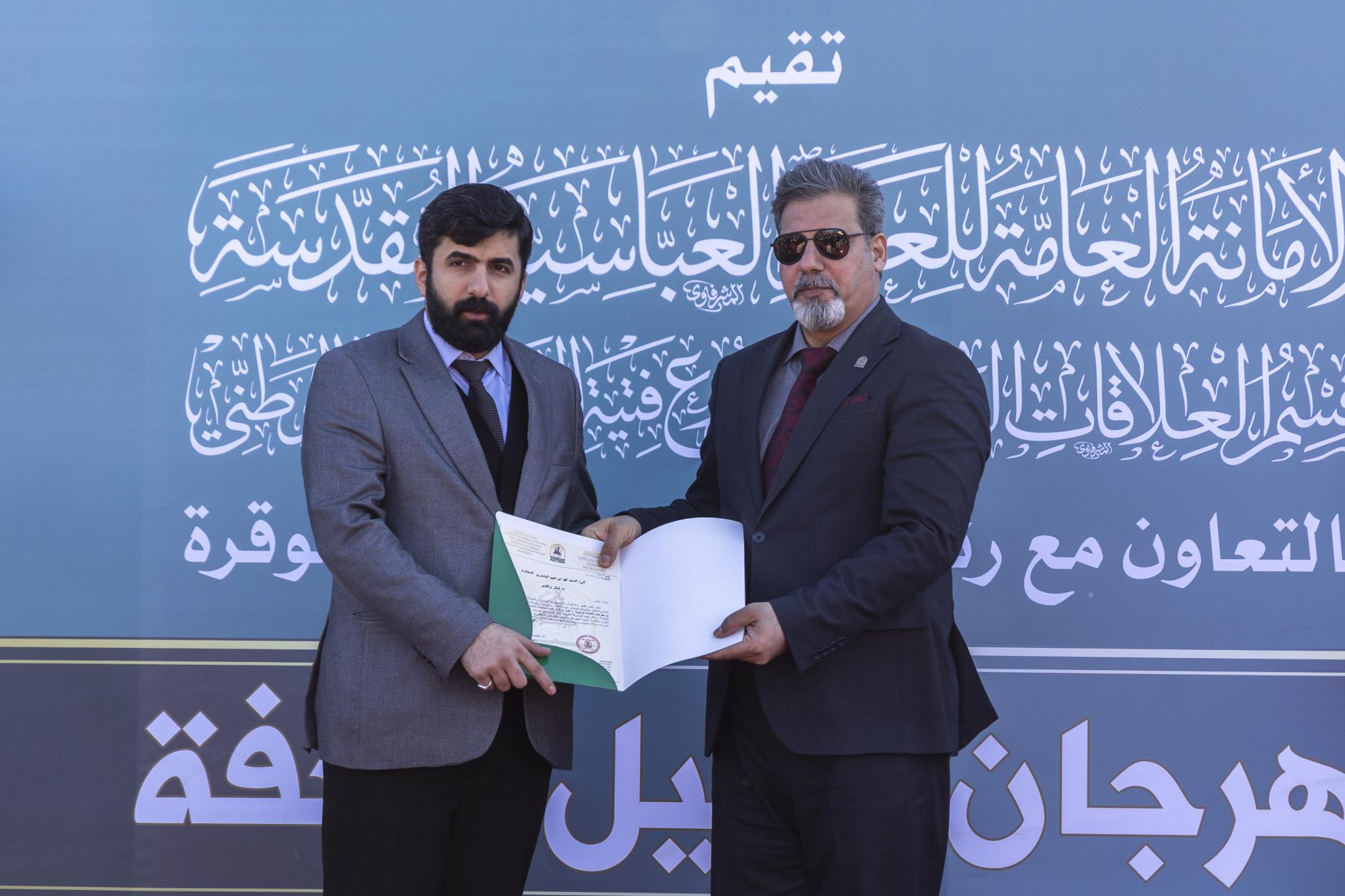 كرّمت العتبة العباسية المقدسة أكثر من 2700 طالبة مرتدية العباءة العراقية في جامعة كربلاء. جاء ذلك ضمن فعاليات مهرجان إكليل العفّة لتكريم الطالبات المرتديات للعباءة العراقية، الذي نظّمته شعبة العلاقات الجامعية والمدرسية التابعة لقسم العلاقات العامة في العتبة العباسية المقدسة، ضمن مشروع فتية الكفيل الوطني، وبالتعاون مع جامعة كربلاء. وقال مسؤول وحدة النشاطات الجامعية التابعة للشعبة، السيد مصطفى فلاح عرسان: إنّه "ضمن سلسلة النشاطات التي يقيمها قسم العلاقات العامة في العتبة العباسية المقدسة، والهادفة إلى تكريم الطالبات المرتديات للعباءة العراقية داخل الحرم الجامعي، أُقيم اليوم مهرجان إكليل العفة بالتعاون مع رئاسة جامعة كربلاء، إذ جرى خلاله تكريم أكثر من 2700 طالبة".