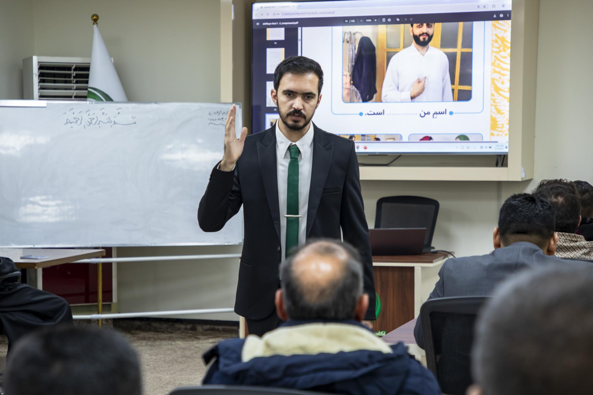 نظمت أكاديمية التطوير الإداري التابعة لقسم التطوير والتنمية المستدامة في العتبة العباسية المقدسة، ورشة تدريبية تخصصية لتعليم اللغة الفارسية، لملاكات العتبة المقدسة. وقال مدرب الورشة، السيد مصطفى القريشي: إنّ "الورشة تهدف إلى تمكين الملاكات من إتقان أساسيات اللغة الفارسية، بما يضمن تحقيق تواصل مباشر وفعّال مع الزائرين القادمين لزيارة مرقدي الإمام الحسين وأخيه أبي الفضل العباس (عليهما السلام)"، مضيفًا أنّ "الورشة تسلط الضوء على الأفعال والجمل الحيوية التي تلامس احتياجات الزائر وتلبي متطلباته بالشكل الأمثل". وبيّن، أنّ "الورشة تأتي كجزء من سلسلة الدورات التي تعتمدها الأكاديمية؛ لتعزيز القدرات اللغوية والمهنية للملاكات بما ينسجم مع رسالة العتبة العباسية المقدسة في تقديم أفضل الخدمات للزائرين الوافدين من داخل العراق وخارجه".