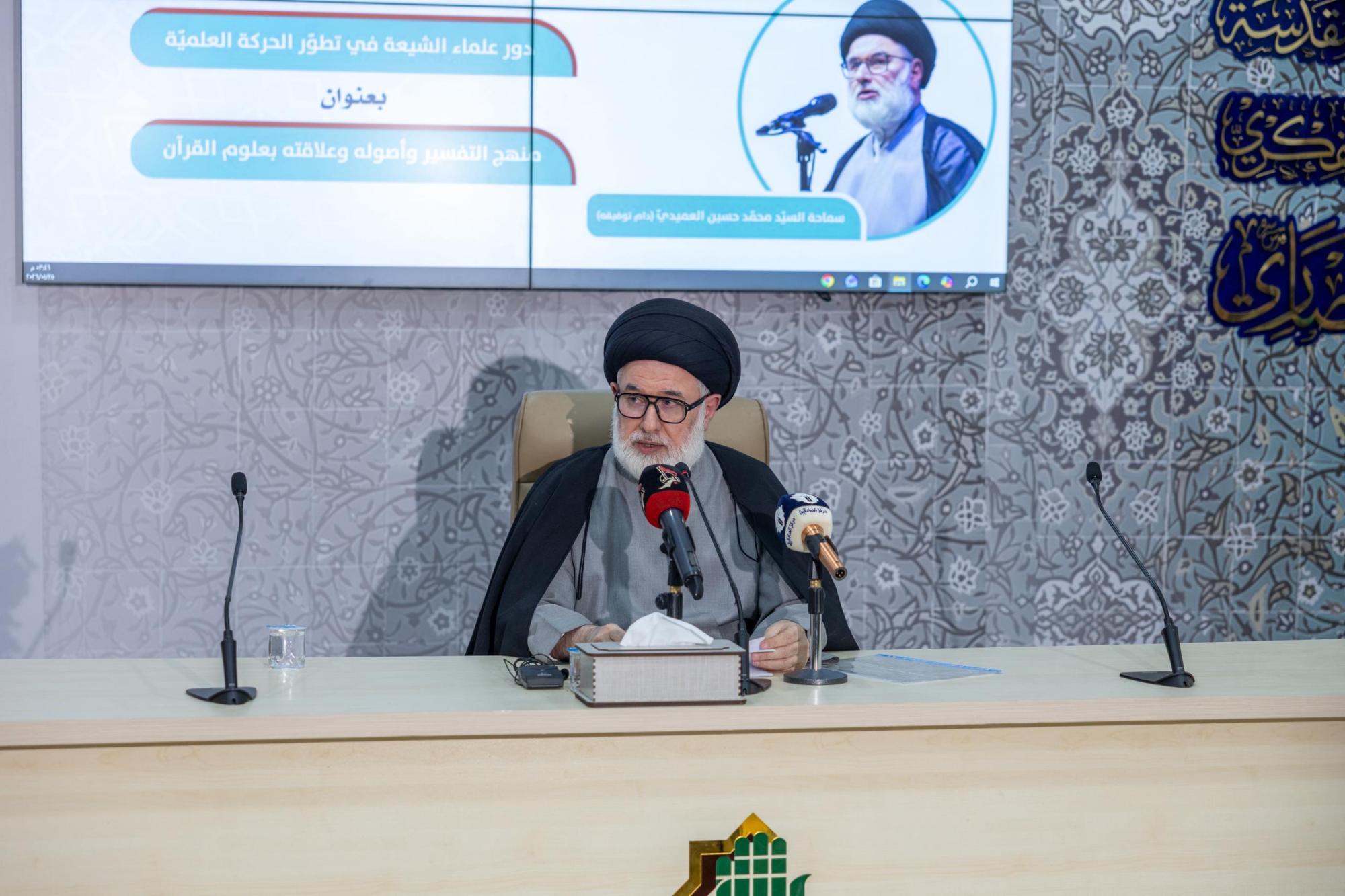 أقامت الهيأةُ العُليا لإحياء التراث في العتبة العبّاسية المقدّسة، الندوة العلمية الخامسة بعنوان (منهج التفسير وأصوله وعلاقته بعلوم القرآن الكريم). وأشرف على المحاضرة مركزُ الصادقَينِ (عليهما السلام) للبحوث والدراسات والتحقيق التابع للهيأة، وقدّمها السيد محمد حسين العميدي، تحت شعار (دور علماء الشيعة في تطوّر الحركة العلمية)، بحضور شخصيّاتٍ أكاديمية ودينية وطلبة الحوزة العلمية. وقال مسؤول وحدة العلاقات والإعلام في المركز الشيخ حمد الشمري، إن "مركز الصادقين (عليهما السلام) أقام اليوم الندوة الخامسة ضمن سلسلة الندوات العلمية، والتي تناولت محاور علمية متعدّدة شملت علوم اللغة والأصول والفقه، واختُتِمت بندوةٍ خُصّصت لعلوم القرآن الكريم". وأضاف أن "الندوة الخامسة شهدت مناقشة المنهج التفسيري للقرآن الكريم، وقدّمها السيد محمد العميدي عبر ورقةٍ بحثيّة تناولت أبرز المناهج التفسيرية وبيان المنهج الرصين".