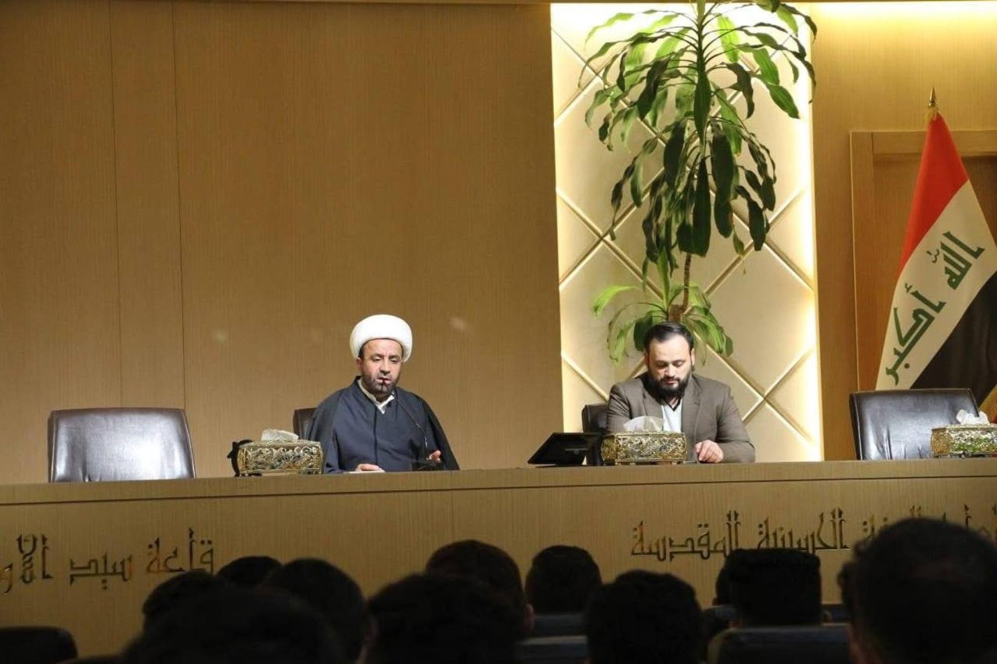 قدَّم قسم الشؤون الفكريَّة والثقافيَّة في العتبة العبَّاسية المقدَّسة ندوةً ثقافية لوفد شبابي من مدينة الموصل. وتولّى تقديم الندوة التي أقيمت في قاعة سيِّد الأوصياء (عليه السلام) التابعة للعتبة الحسينيّة المقدّسة مدير مركز الدراسات والمراجعة العلميَّة في القسم، الشيخ حسن الجوادي، وذلك ضمن البرامج الهادفة إلى تعزيز الوعي الديني والفكري لدى شريحة الشباب. وقال الجوادي: "قدَّمنا ندوةً فكريّة بعنوان (الشباب والتفقُّه في الدين)، تناولت جملةً من النصوص الواردة عن أهل البيت (عليهم السلام) التي تحثُّ الشباب على التفقُّه في الدين، والتمسّك بالثقلين، والتعرُّف على أحكام الشريعة الإسلاميَّة والالتزام بها في مختلف مفاصل الحياة". وأضاف: أنَّ " بناء وعيٍ دينيٍّ رصين لدى الشباب يُعدُّ من المرتكزات الأساس في تحصين المجتمع، وترسيخ الهويَّة الإيمانيَّة والفكريَّة، ولا سيَّما في ظلِّ التحدِّيات الفكريَّة والثقافيَّة المعاصرة".