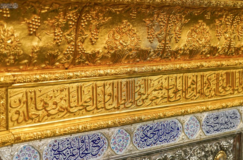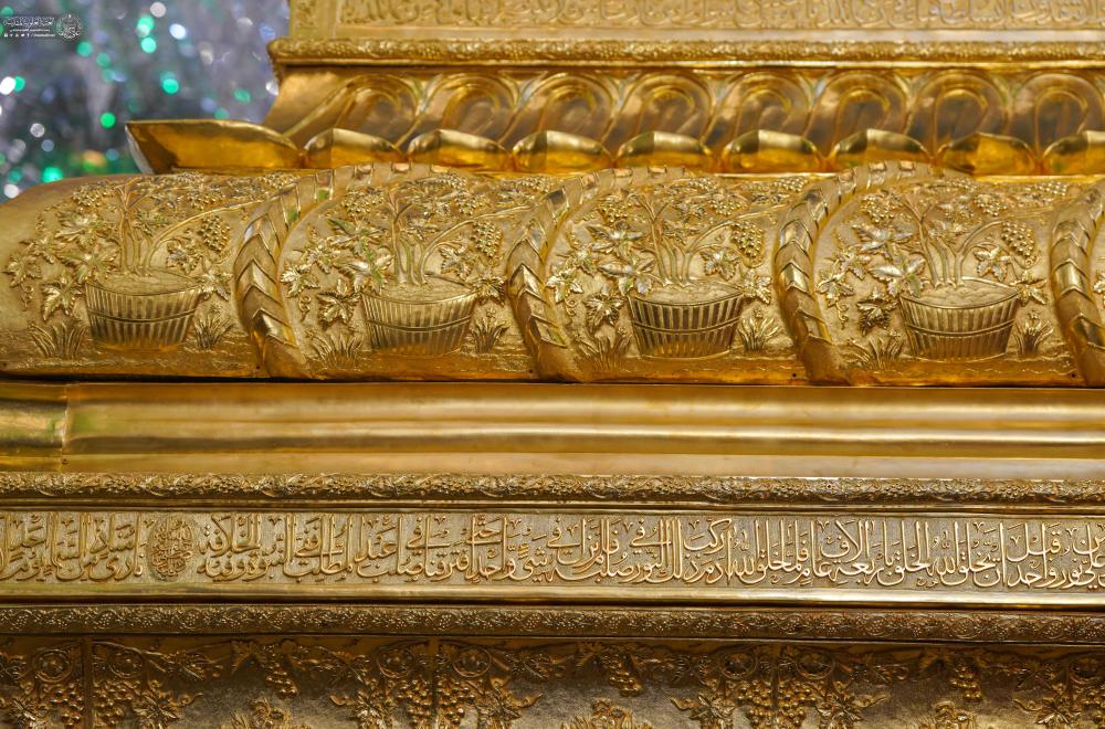 وأضاف أن المشروع شمل أيضًا تنصيب أربع قناديل ذهبية مطعمة بالمينا في أركان الشباك الطاهر، وهي تحمل دلالات عقائدية ومزخرفة بزخارف نباتية وإسلامية، فضلًا عن استبدال القناديل المذهبة التي تتوسط أركان الضريح بقطع جديدة صُممت برمزية خاصة، حيث ترمز في أعلاها إلى خوذة الفارس وبدنه، وزُينت بنقوش ورود وعناقيد عنب تعبّر عن السلام والطمأنينة".