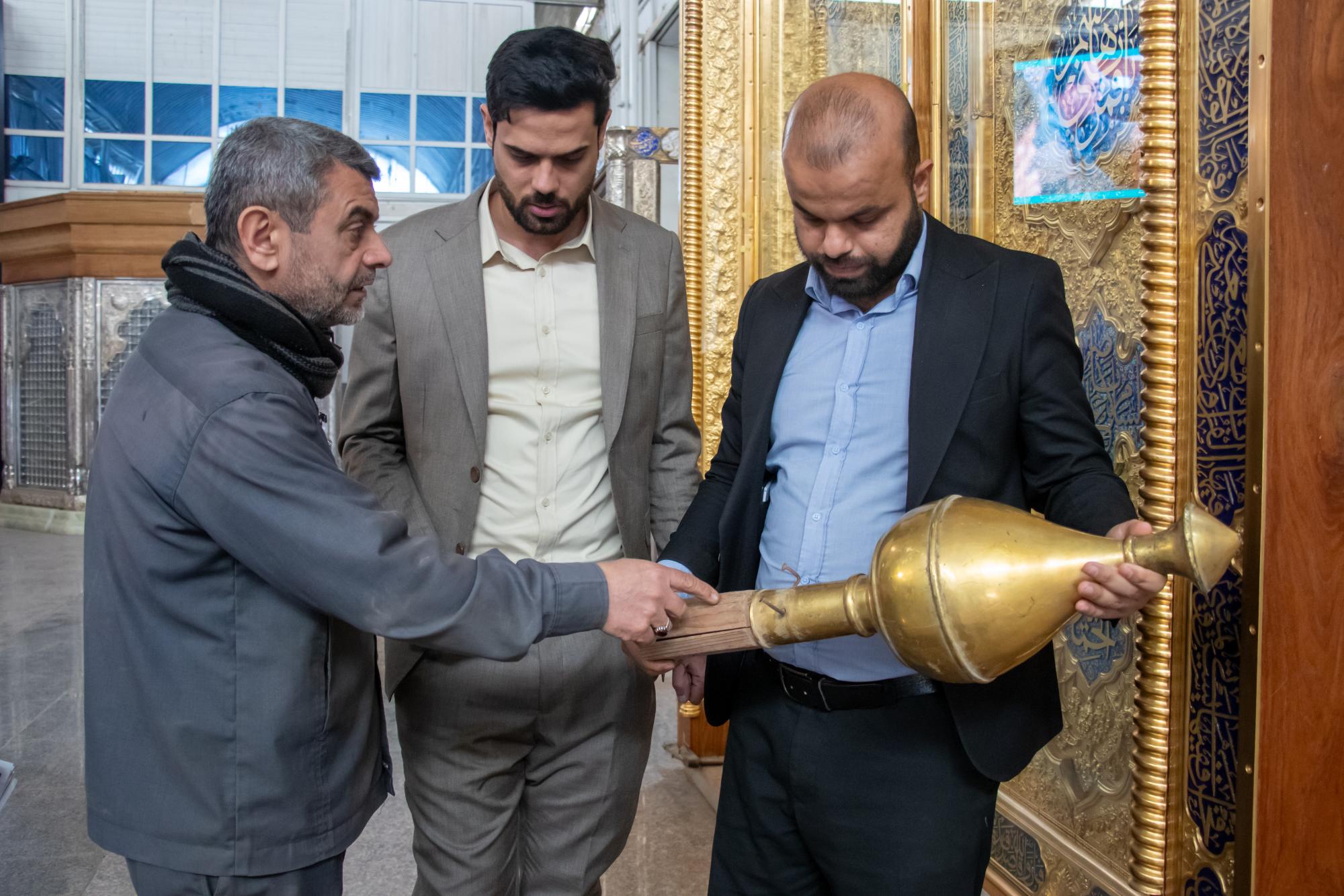استقبل قسم صناعة شبابيك الأضرحة الشريفة وأبوابها في العتبة العباسية المقدسة وفدًا من العتبة العسكرية المقدسة للاطلاع على أعمال ترميم شبابيكها. وقال مسؤول وحدة الذاتية التابعة إلى الشعبة الإدارية في القسم، السيد أحمد قيس الصفار، "استقبلنا وفدًا من العتبة العسكرية المقدسة بهدف الاطلاع على أعمال ترميم شبابيكها المتمثلة بالشباك القديم لمرقد الإمامين العسكريين (عليهما السلام) الذي يمتد عمره إلى ما يقارب 325 عامًا، والشباك السابق الذي تعرض للتفجير الآثم عام 2006، فضلًا عن شباك السرداب المقدس للإمام المهدي (عجل الله فرجه) الذي يبلغ عمره قرابة 840 عامًا". وأضاف، أنَّ "الوفد سلم الملاكات الفنية في القسم بعض القطع المفقودة من شبابيك المرقد الطاهر؛ من أجل إكمال أعمال الترميم بشكل نهائي".