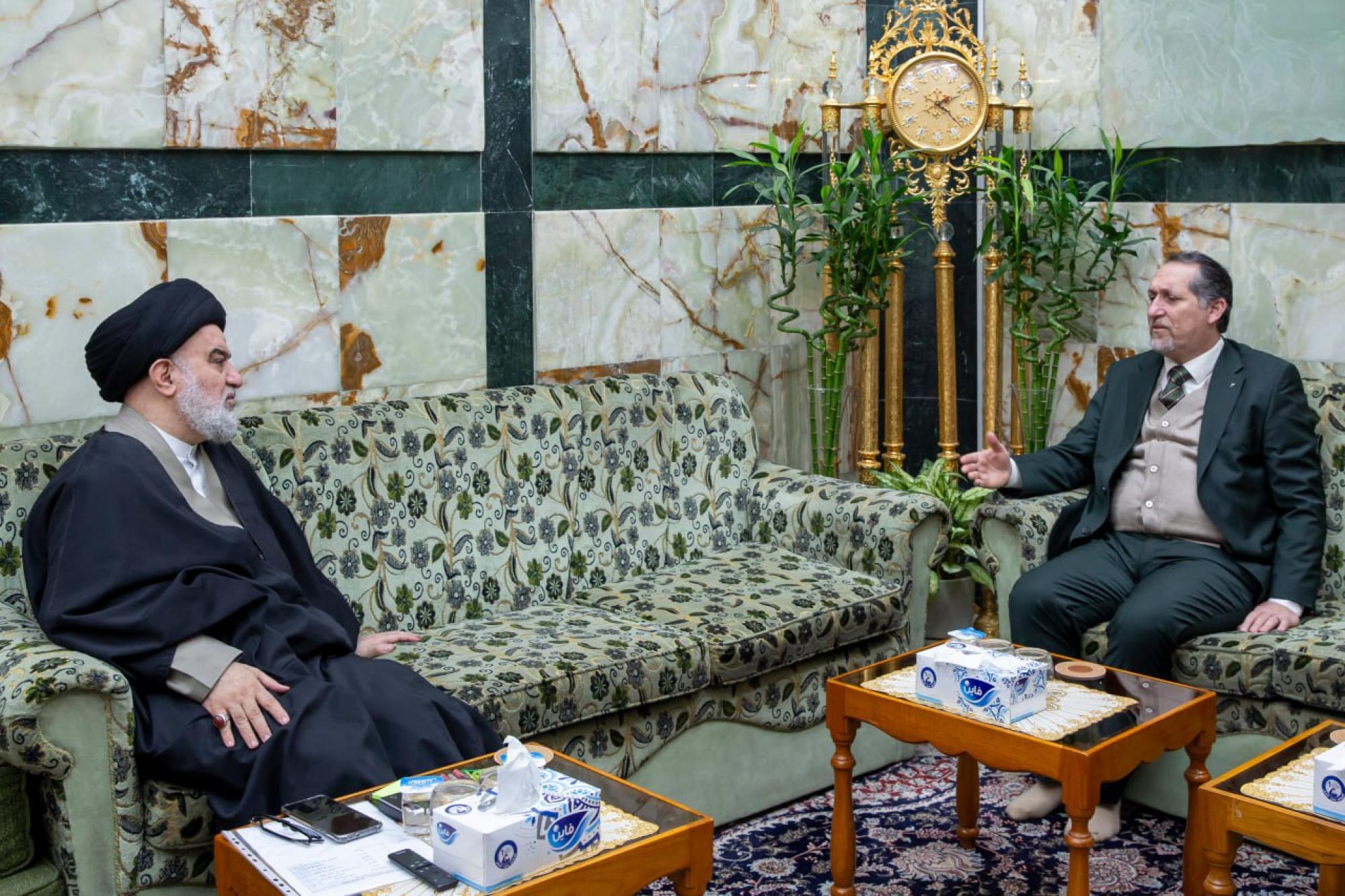 أكّد المتولّي الشرعيّ للعتبة العبّاسية المقدّسة سماحة العلّامة السيد أحمد الصافي، أهمّية تدريب وتطوير الملاكات الصحّية في العتبة المقدّسة بشكلٍ مستمرّ، وتعزيز جاهزيّتها لخدمة الزائرين. جاء ذلك خلال استقبال سماحته مدير عام دائرة صحّة كربلاء المقدّسة الدكتور صفاء الدده، بحضور المشرف على قسم الشؤون الطبّية في العتبة المقدّسة السيد جواد الحسناوي، واستماعه لشرحٍ عن الخدمات الصحّية المشتركة المقدّمة من الجهتَينِ للزائرين. وتطرّق سماحتُه إلى أهمّية تكثيف برامج التدريب لملاكات العتبة المقدّسة، لا سيّما العناصر التي تكون في تماسٍّ مباشر مع حشود الزائرين، وفي المواقع التي تتطلّب تدخّلاتٍ إغاثية أو طارئة. وشدّد على ضرورة تأهيلهم في مهارات الإسعاف الأوّلي والتعامل مع الحرائق والحالات الطارئة لضمان سلامة الزائرين وتفادي الحوادث العرضية.