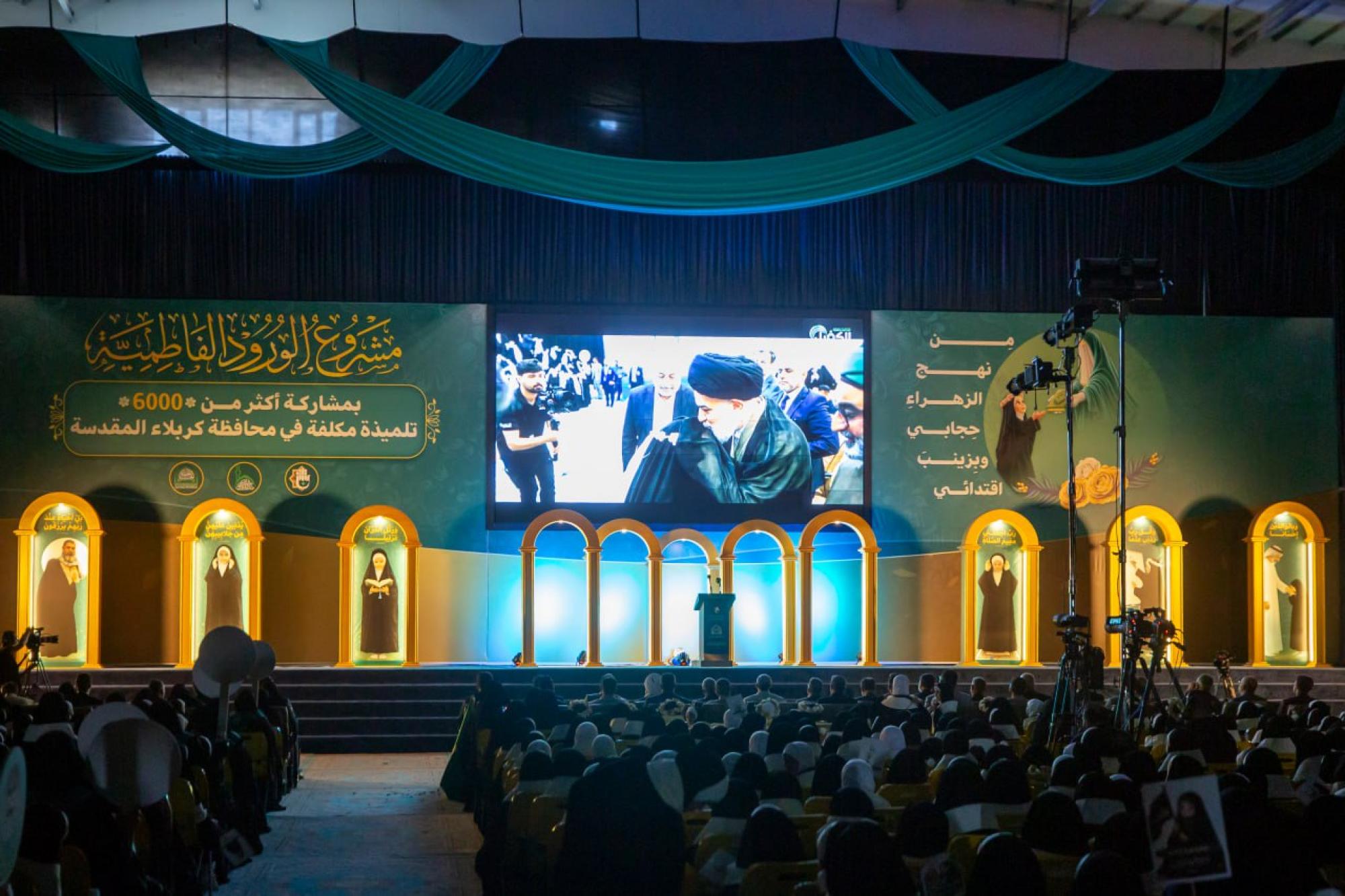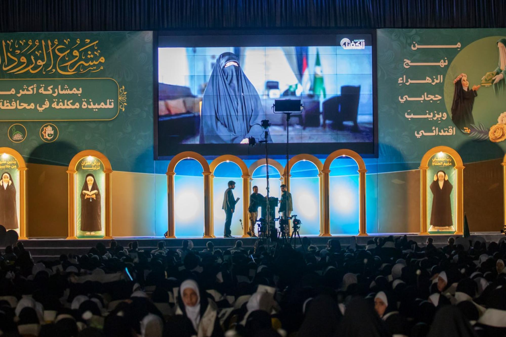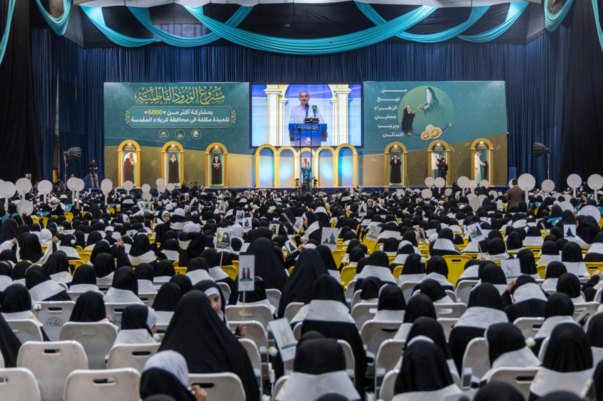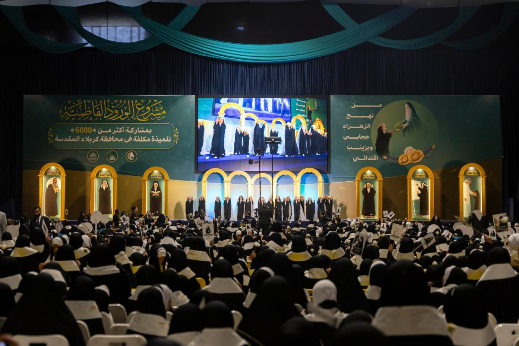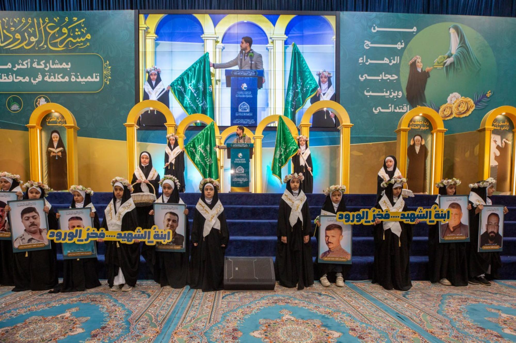 اختتمت العتبة العباسية المقدسة فعاليات حفل التكليف المركزي الثامن ضمن مشروع الورود الفاطمية، بمشاركة أكثر من 6 آلاف تلميذة من مدارس محافظة كربلاء. وأقامت الحفل شعبة الخطابة الحسينية النسوية التابعة لمكتب المتولي الشرعي للشؤون النسوية في العتبة المقدسة، بالتعاون مع مديرية تربية كربلاء، تحت شعار (من نهج الزهراء حجابي وبزينب اقتدائي). ونُظمت الفعاليات التي استمرت يومين، في مجمع أبي الفضل العباس (عليه السلام)، بحضور المتولي الشرعي للعتبة العباسية المقدسة سماحة العلامة السيد أحمد الصافي، وعدد من مسؤوليها، إلى جانب شخصيات رسمية وتربوية وأهالي التلميذات. وتضمن الحفل فقرات متنوعة، منها: كلمة للعتبة العباسية المقدسة ألقاها عضو مجلس إدارتها ورئيس هيأة التربية والتعليم العالي فيها الدكتور عباس الدده الموسوي، وكلمة للمديرية العامة لتربية كربلاء، قدمها معاون مديرها العام الدكتور جواد المسلماوي. وشهدت الفعاليات ترديد التلميذات عهد التكليف والنشيد الخاص به، وعرض فيلم تعريفي بمشروع الورود الفاطمية، وتقديم عرض مسرحي بعنوان (من الخيام إلى الفتوى)، إلى جانب إلقاء قصائد شعرية، والتقاط صورة تذكارية لسماحة السيد الصافي مع التلميذات المكلفات، وبنات الشهداء منهن، تأكيدًا على الوفاء لتضحياتهم الجليلة.
