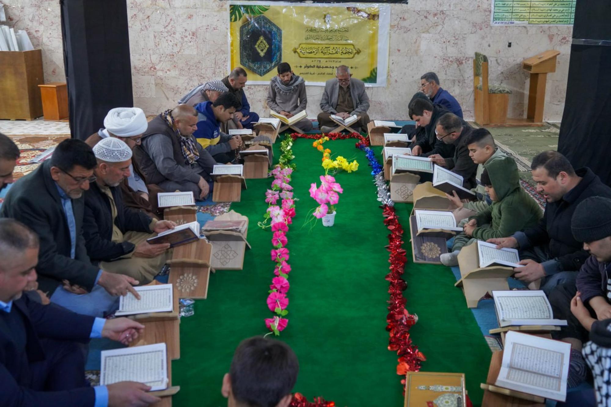 أقامَ المجمَعُ العلميّ للقرآن الكريم في العتبة العبّاسية المقدّسة، سبع ختماتٍ قرآنية في محافظة ديالى، توزّعت بين مركز المحافظة وعددٍ من أقضيتها ونواحيها، ضمن برنامجه الرمضانيّ السنويّ. وقال مديرُ معهد القرآن الكريم في النجف الأشرف التابع للمجمَع، الدكتور مهند الميالي، إن "الختمات تُقام بمشاركة 25 قارئاً يتناوبون على تلاوة أجزاء القرآن الكريم في المساجد والحسينيات والمضايف، وسط حضورٍ واسع وتفاعلٍ من أبناء المحافظة"، مبيّناً أنها "تستمرّ طيلة أيام الشهر الفضيل بواقع جزءٍ واحد في كلّ جلسة".