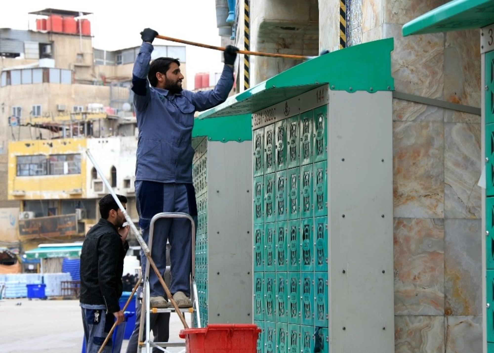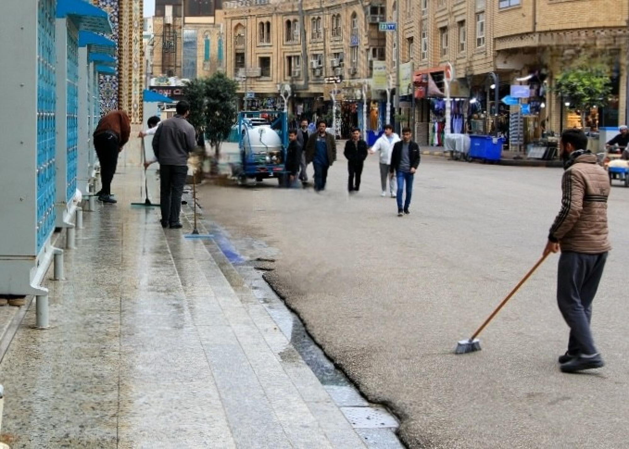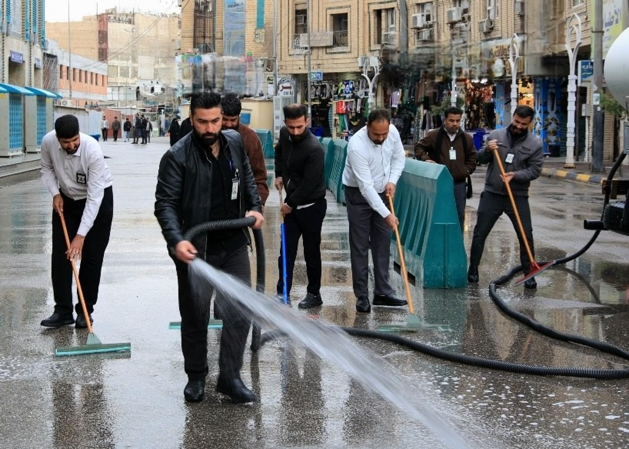 قسم الشؤون الخدمية ينفذ حملة غسل وتنظيف لمحيط العتبة العباسية المقدسة