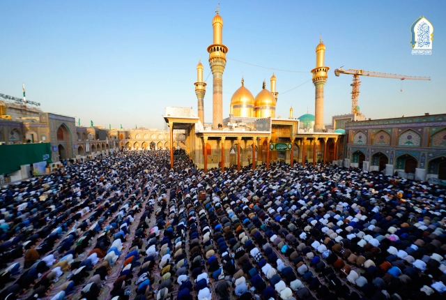 مشهد إيماني كبير احتضنته رياض الإمامة وينابيع المعاجز والكرامات رحاب الإمامين موسى بن جعفر الكاظم ومحمد بن علي الجواد "عليهما السلام"، ومنذ ساعات الصباح الأولى ليوم السبت 1 شوال 1447هـ الموافق 21 آذار 2026م، تجلّت الفيوضات الإلهية بأروع صورها لتكون خاتمة للصيام ومكللة بالطاعات.