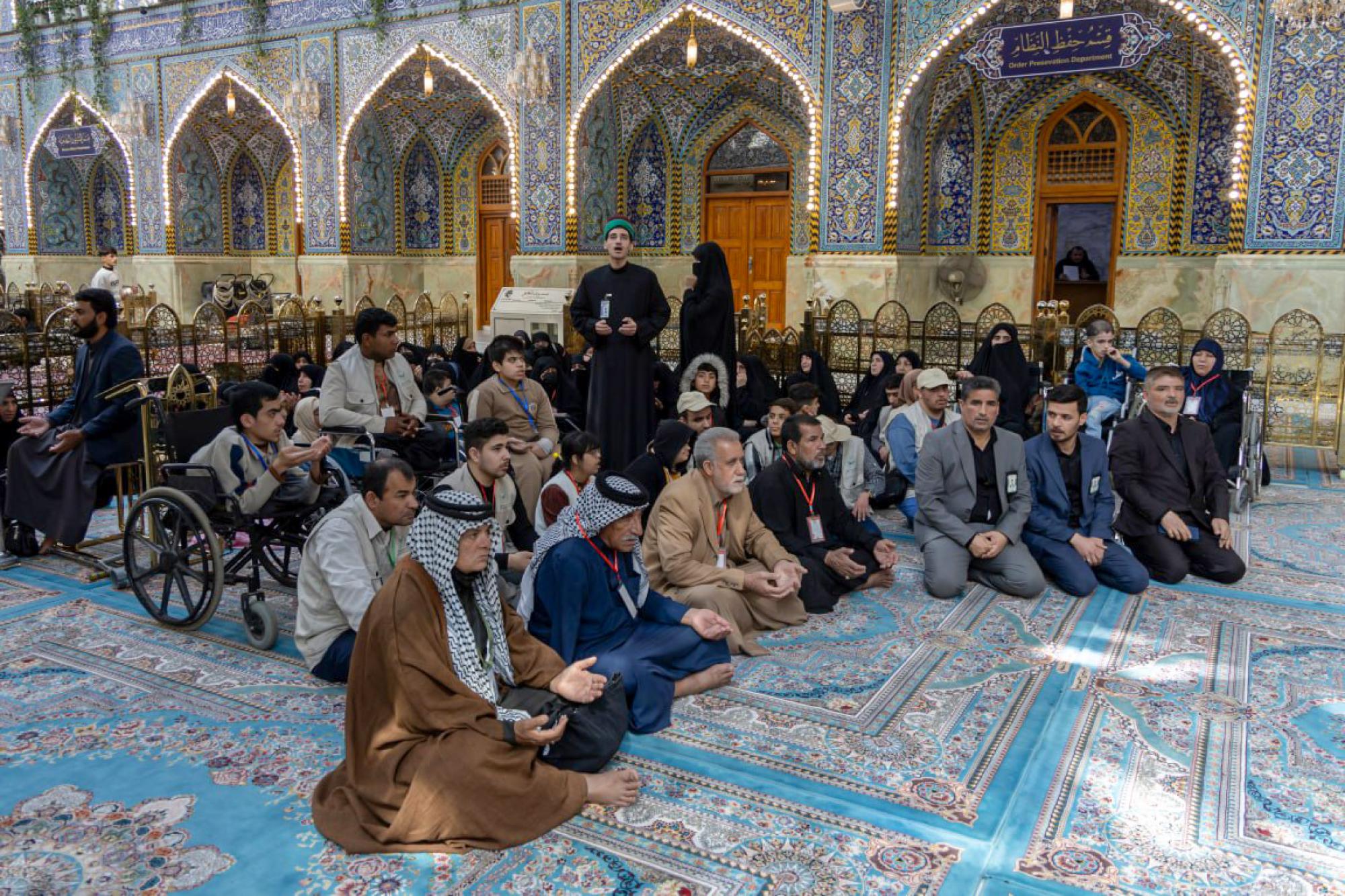 نظم قسم العلاقات العامة في العتبة العباسية المقدسة برنامجًا ثقافيًّا لوفد مؤسسة الغدير للمعاقين من محافظة النجف الأشرف. وقال مسؤول وحدة العلاقات الداخلية التابعة لشعبة العلاقات والتنسيق الداخلي في القسم، السيد نافع المنكوشي: إنّ القسم استقبل وفد المؤسسة البالغ عددهم 100 شخص من ذوي الاحتياجات الخاصة برفقة عوائلهم، وأعد لهم برنامجًا خاصًّا تضمن زيارة مرقد أبي الفضل العباس (عليه السلام). وأضاف أنّ البرنامج شمل جولة تعريفية في متحف الكفيل للنفائس والمخطوطات للاطلاع على أبرز مقتنياته التاريخية، فضلًا عن استضافتهم في مضيف أبي الفضل العباس (عليه السلام). من جانبه، أعرب رئيس المؤسسة، السيد جاسم الطيار، عن شكره لهذه المبادرة، مؤكدًا أنّ "الزيارة تأتي ضمن برنامج سنوي يُنفذ بالتعاون مع العتبة العباسية المقدسة؛ بهدف دعم هذه الشريحة ودمجها في المجتمع".