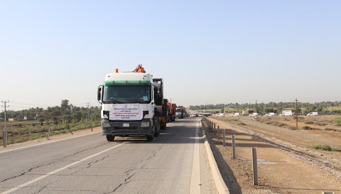 تجسد أضخم جهود الإغاثة الإنسانية.. شاهد بالصور: قافلة العتبة الحسينية في طريقها إلى إيران