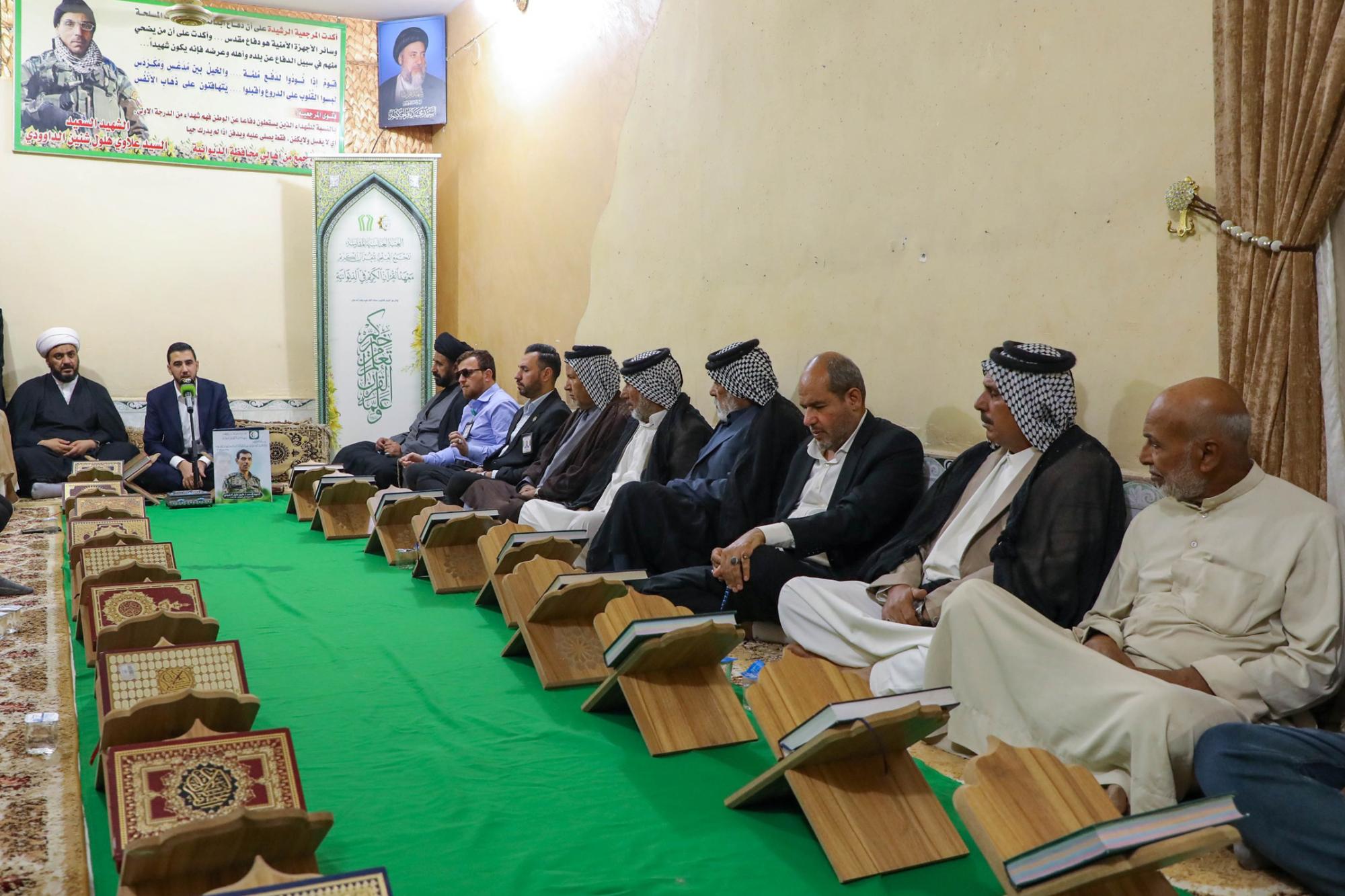يواصل المجمع العلميّ للقرآن الكريم في العتبة العباسية المقدسة إقامة فعاليات برنامج "يستبشرون" القرآني، عَبرَ تنظيم زيارات ميدانية لعوائل شهداء فتوى الدفاع الكفائي في محافظة الديوانية. وقال مسؤول معهد القرآن الكريم في الديوانية التابع للمجمع السيد خالد العبادي: إنّ "المعهد يواصل تنفيذ فقرات برنامج يستبشرون القرآني في المحافظة، الذي استُهلّ بتلاوة آيات من الذكر الحكيم بصوت قارئ المعهد الشيخ محمد عبد الشهيد، تلتها كلمة تناولت مكانة الشهداء وفضلهم، قدّمها الشيخ علي الجاسمي". وأضاف أنّ "البرنامج تضمّن إقامة مجلس عزاء للإمام الحسين (عليه السلام)، أحياه الشيخ محمد عبد الشهيد".