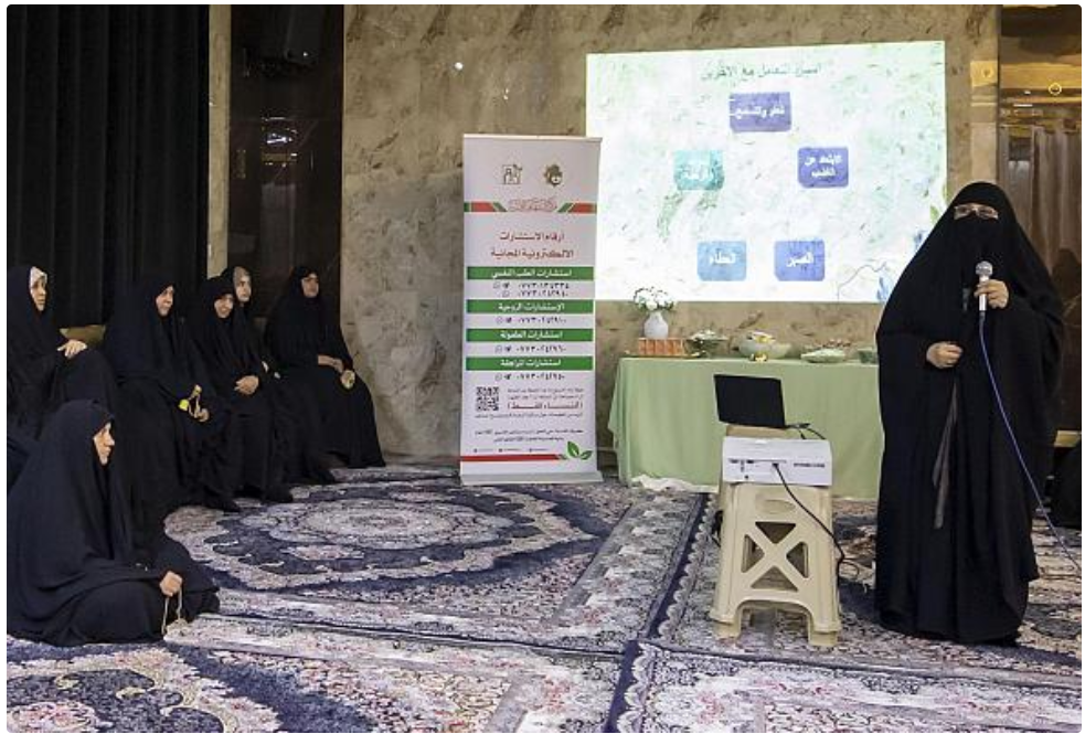 أقام مركزُ الثقافة الأسريّة التابع لمكتب المتولّي الشرعيّ للشؤون النسوية في العتبة العبّاسية المقدّسة، برنامج (واحة ثقافية) في كربلاء المقدّسة، بمشاركة نحو 120 امرأة. وقالت مسؤولةُ النشاطات في المركز، السيدة إخلاص جواد، إن "البرنامج أُقِيم في حسينيّة الزهراء(عليها السلام)، وتضمّن محاضرةً توعويّة قدّمتها الأستاذة منال داخل، تناولت فيها موضوعات ترتبط بالحياة اليومية، وسبل تعزيز الوعي الأسريّ والثقافيّ لدى المرأة، إلى جانب مناقشة أبرز التحدّيات التي تواجه النساء في المجتمع". وأضافت أن "البرنامج شهد تفاعلاً لافتًا من الحاضرات، عبر طرح الأسئلة والاستفسارات، التي أُجِيبَ عنها بشكلٍ مباشر، بما يعزّز مستوى الفائدة".