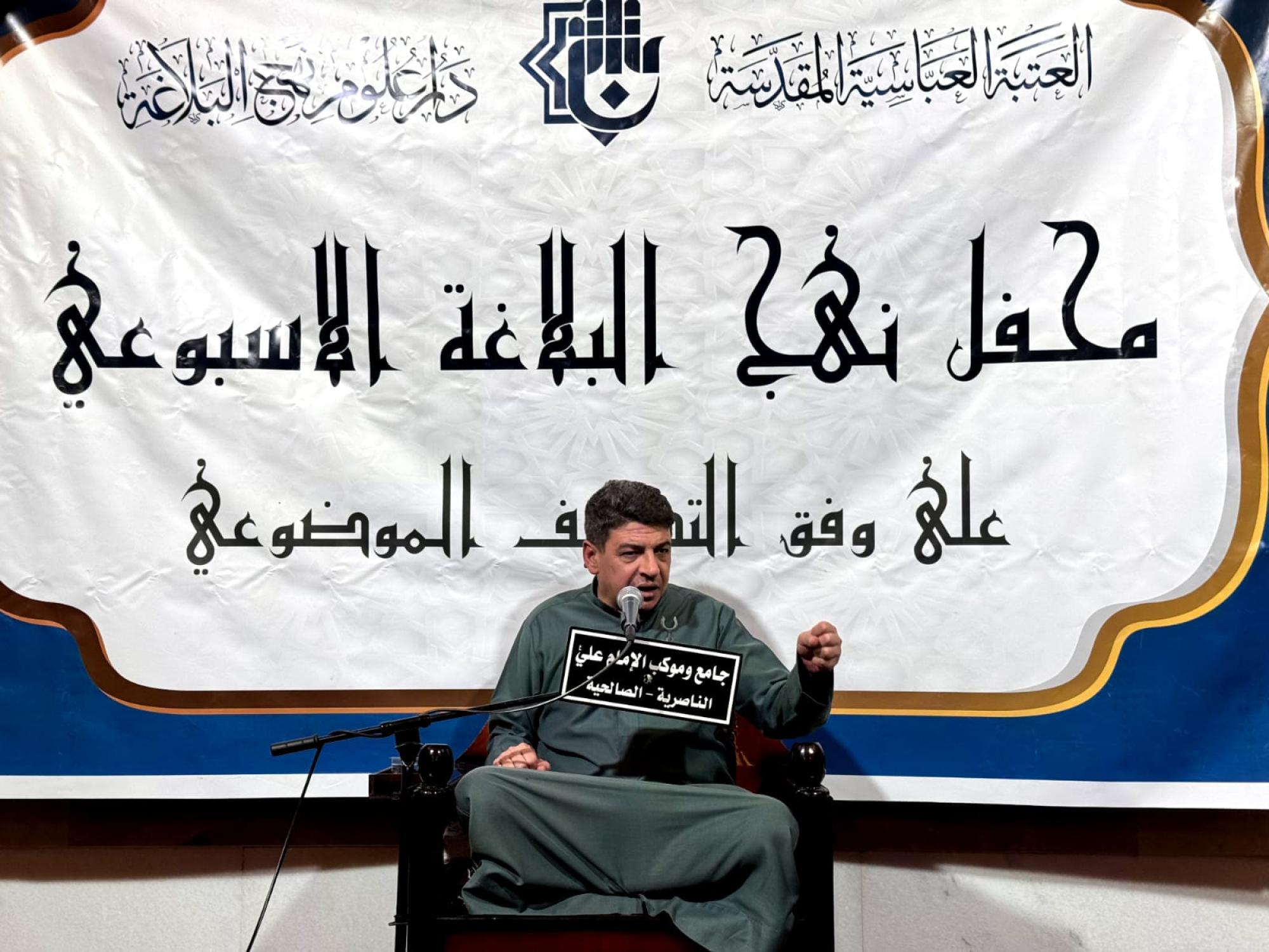 أقامت دارُ علوم نهج البلاغة التابعة للعتبة العبّاسية المقدّسة، محفل نهج البلاغة الأسبوعيّ على وفق التصنيف الموضوعيّ، في محافظة ذي قار. وقال رئيسُ الدار الدكتور لواء العطية، إن "هذا المحفل يمثّل حلقةً ضمن مجموعة جهودٍ علميّةٍ تتبنّاها الدار؛ لتوضيح العمق الفكريّ لنهج البلاغة وتقريبه من واقع الفرد والمجتمع"، مشيراً إلى أن "الهدف الأسمى من إقامته هو استحضار هذا التراث العظيم كمنهج عملٍ يوميّ يُسهِمُ في رقيّ المجتمع واستقراره الفكريّ، أمام مختلف التحدّيات والمتغيّرات المعاصرة".