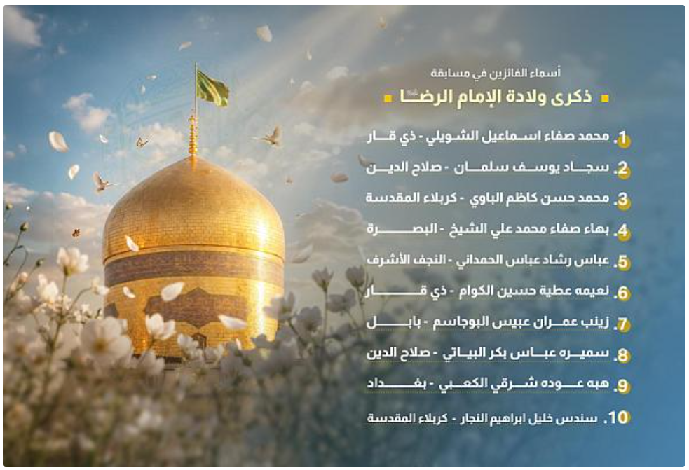 العتبة العباسية المقدسة تعلن أسماء الفائزين بمسابقة ذكرى ولادة الإمام الرضا (عليه السلام)