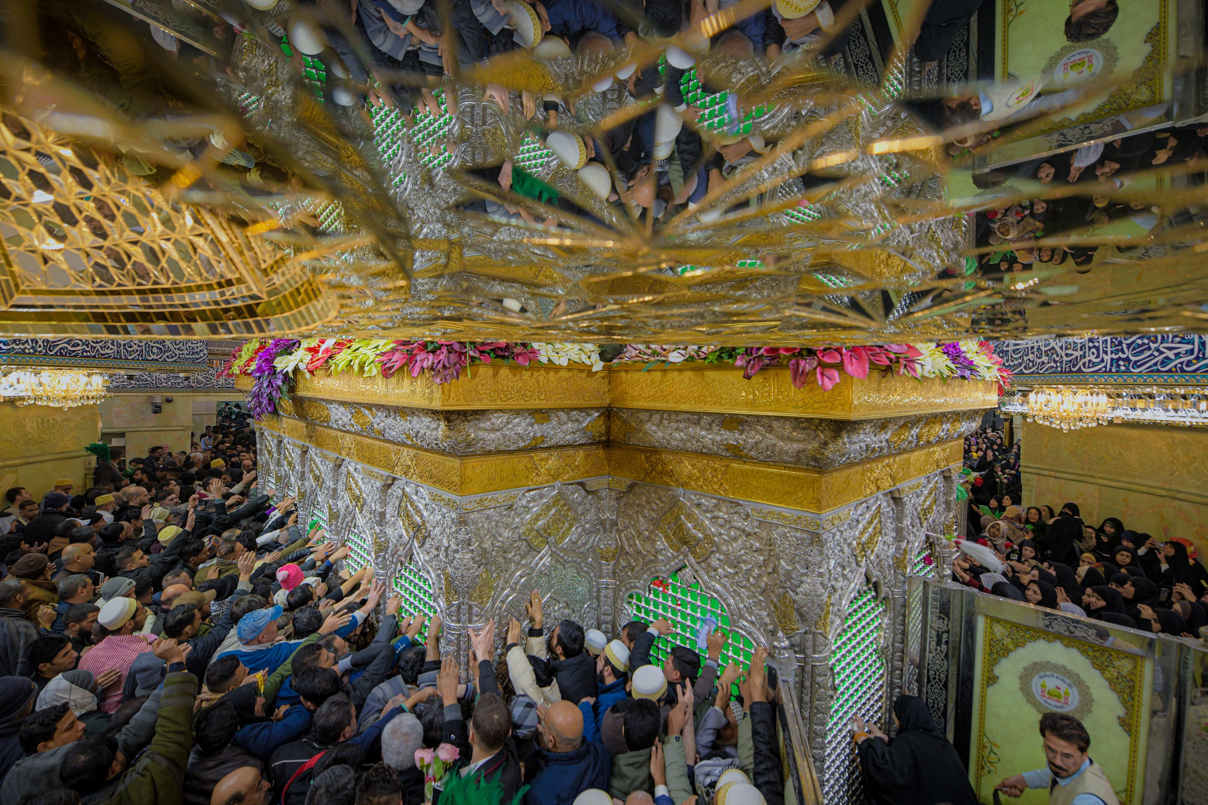 اكاليل الورد فوق ضريح الامام الحسين (ع)