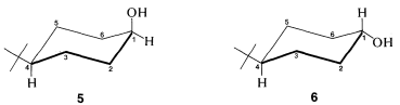 Use of C13 nmr spectroscopy to determine whether a substituent is in an axial or equatorial position is well illustrated with cis- and trans-4-tert-butylcyclohexanols, 55 and 66: