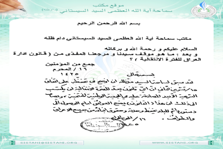 رسالة جوابية موجهة إلى السيد الأخضر الابراهيمي تتضمن الموقف من قانون إدارة العراق للمرحلة الانتقالية