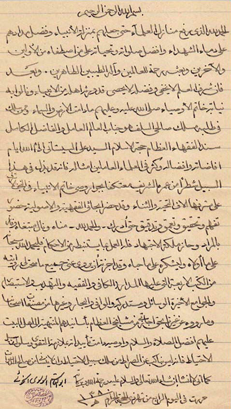 نبوغه العلمي لقد برز السيد السيستاني ( دام ظلّه ) في بحوث اساتذته بتفوق بالغ على اقرانه وذلك في قوّة الإشكال وسرعة البديهة وكثرة التحقيق والتتبع ومواصلة النشاط العلمي وإلمامه بكثير من النظريات في مختلف الحقول العلمية الحوزوية، ومما يشهد على ذلك أنه منح من بين زملاه واقرانه في عام 1380 هـ وهو في الحادية والثلاثين من عمره ـ ( شهادة الاجتهاد المطلق ) من قبل استاذيه السيد الخوئي (قدّس سرّه ) والشيخ الحلي (قدّس سرّه ) ولم يمنح السيد الخوئي شهادة الاجتهاد الإّ لنادرٍ من تلامذته منهم سيدنا الأستاذ وآية الله الشيخ علي الفلسفي من مشاهير علماء مشهد المقدسة كما لم يمنح الشيخ الحلي اجازة الاجتهاد المطلق لغيره ( دام ظلّه ) وقد كتب له ايضاً شيخ محدّثي عصره العلاّمة الشيخ آغا برزك الطهراني (قدّس سرّه ) شهادة يطري فيها على مهارته في علمي الرجال والحديث وهي مؤرخة كذلك في عام 1380 هـ.