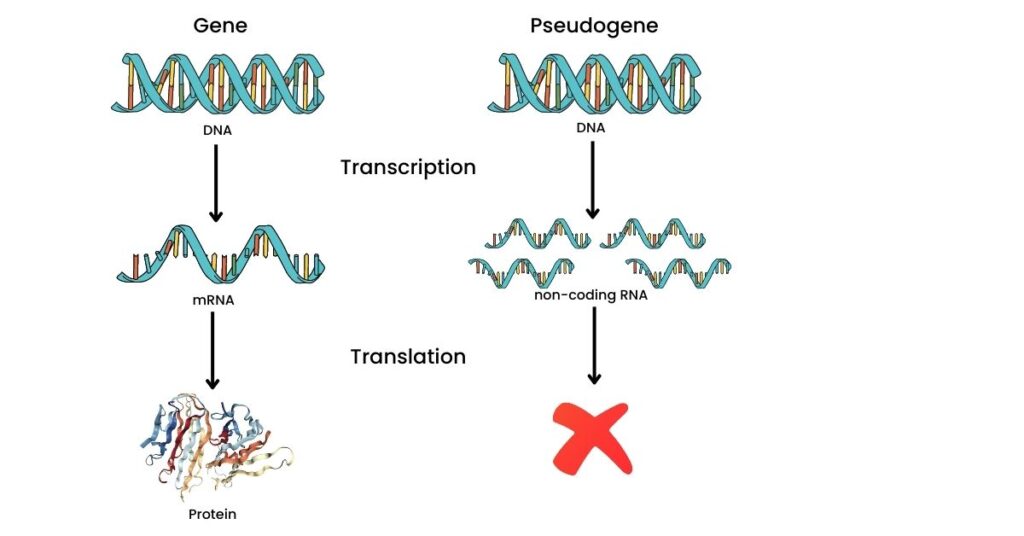 تسلسلات من الـDNA تشبه الجينات الحقيقية لكنها فقدت قدرتها على إنتاج بروتينات فعالة بسبب طفرات أو حذف أو تغيرات في مواقع التنظيم فتعد نسخ غير وظيفية من جينات كانت تعمل في الأصل. تنشأ إما من تكرار جين فعال تراكمت فيه الطفرات أو من إدراج نسخة من mRNA عكسياً في الجينوم دون محفز أو من جينات فقدت وظيفتها عبر التطور ، ورغم أنها كانت تعتبر سابقاً تسلسلات غير فعالة أو عديمة الوظيفة إلا أن الأبحاث الحديثة أظهرت أن بعضها يسهم في تنظيم التعبير الجيني والتطور الوراثي