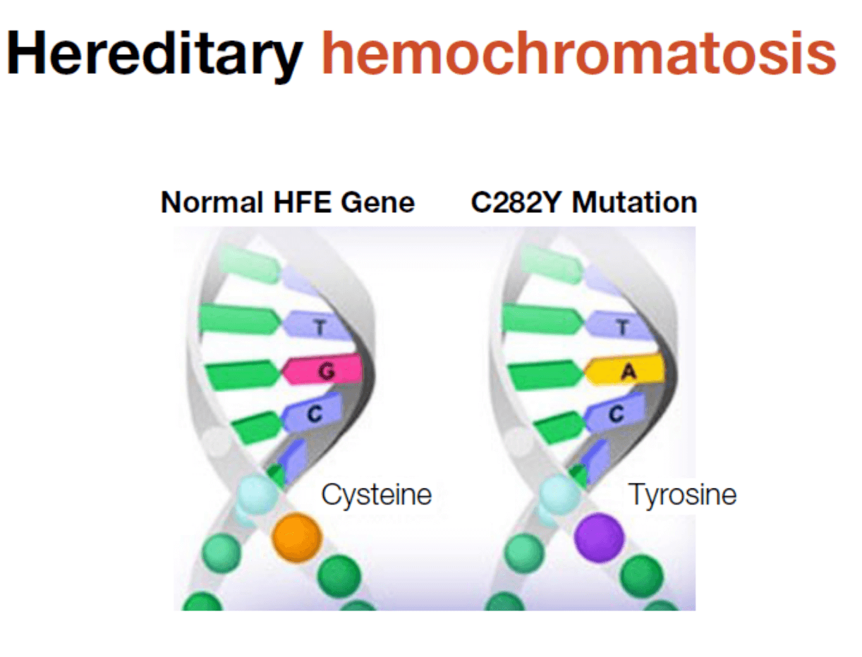 هي طفرة نقطية تؤدي إلى استبدال الحمض الأميني Cysteine بـ Tyrosine في الموقع 282 من البروتين وتعد السبب الأكثر شيوعاً لداء ترسب الأصبغة الدموية الوراثي (Hereditary Hemochromatosis). تؤثر هذه الطفرة على تنظيم امتصاص الحديد من الأمعاء عن طريق تعطيل تفاعل بروتين HFE مع مستقبل TfR1 مما يؤدي إلى زيادة امتصاص الحديد وتراكمه في الأنسجة خاصة الكبد والقلب والبنكرياس وقد يسبب مضاعفات خطيرة مثل تليف الكبد Cirrhosis والسكري وقصور القلب Cardiomyopathy في حال عدم التشخيص والعلاج…
