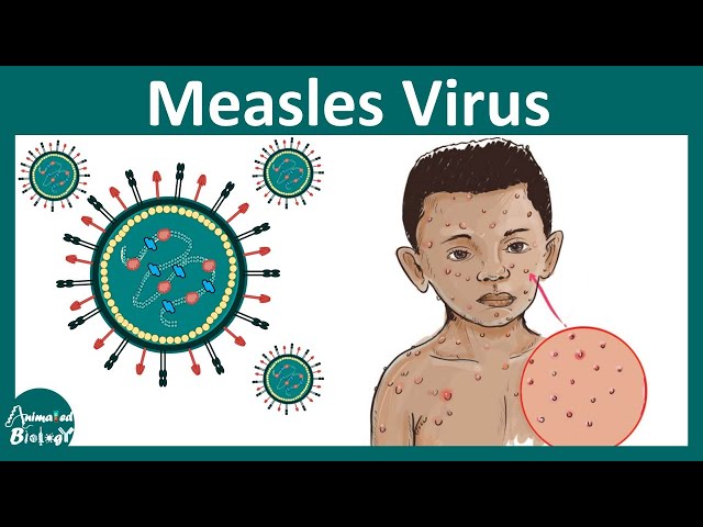هو فايروس RNA مغلف من عائلة Paramyxoviridae شديد العدوى وينتقل عبر الرذاذ التنفسي. يهاجم خلايا الجهاز التنفسي والمناعة ويسبب أعراضاً تبدأ بالحمى والسعال والتهاب العين تليها بقع كوبليك (Koplik spots) داخل الفم كعلامة تشخيصية مبكرة وطفح جلدي ينتشر من الوجه إلى الجسم. يُضعف المناعة مؤقتاً ويزيد خطر العدوى الثانوية. رغم خطورته يمكن الوقاية منه بلقاح فعال ضمن اللقاح الثلاثي (MMR).